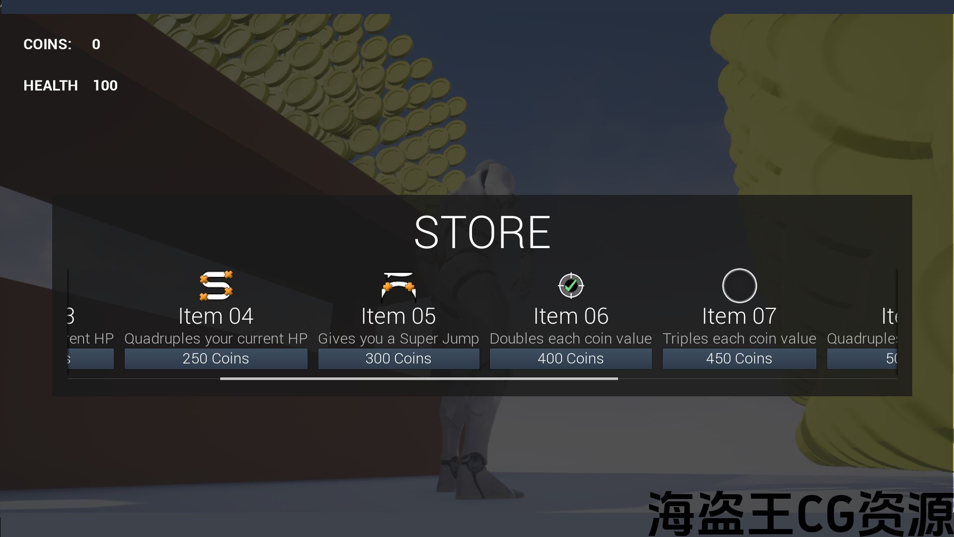 Easily implemented In Game Store System great for any game that involves any type of simulated store. Everything is easily changed and converted to fit your game’s needs. (Works with any game type (First Person, Third Person, Top Down, etc…) but comes with Third Person Example.)