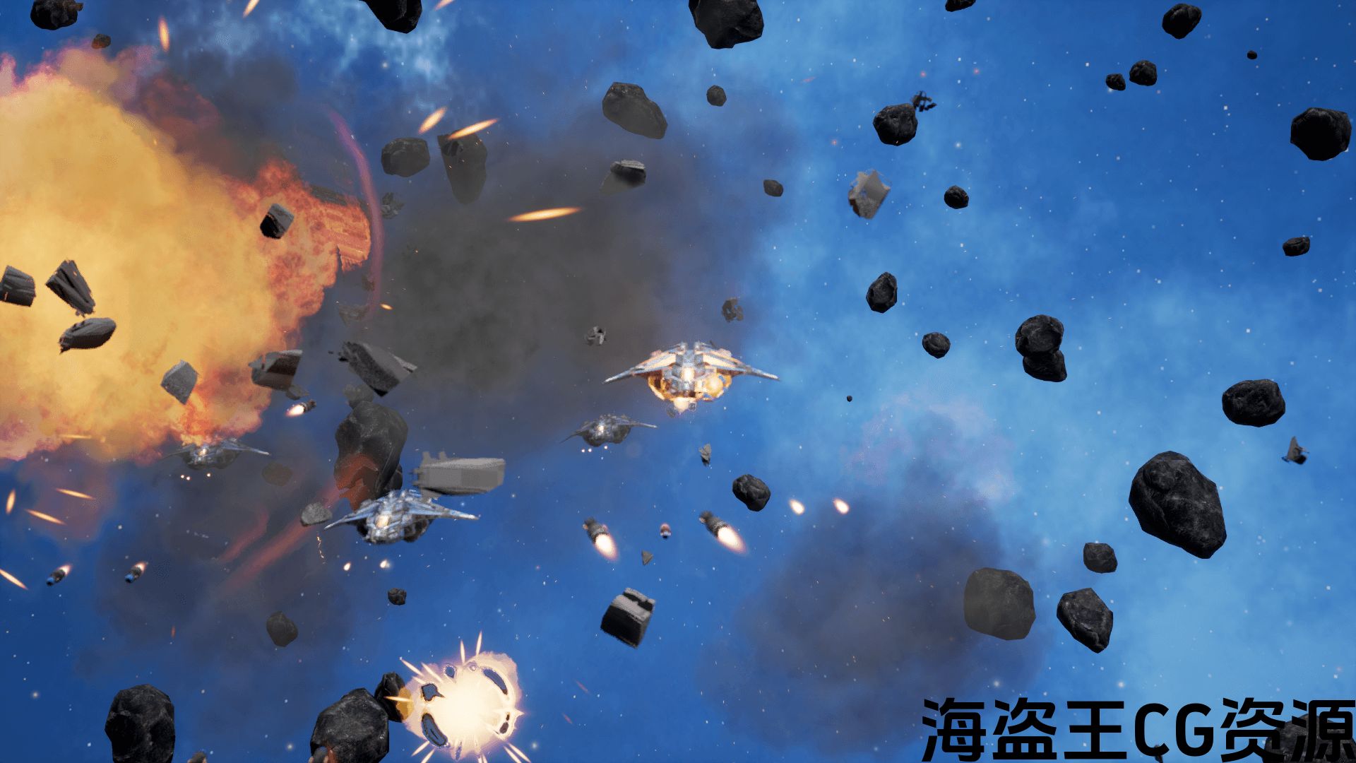 This project makes use of P_Explosion from the starter content for weapon and ship explosions.