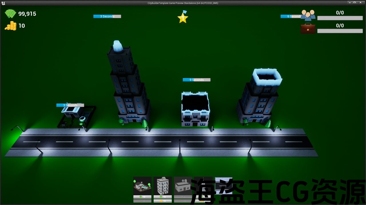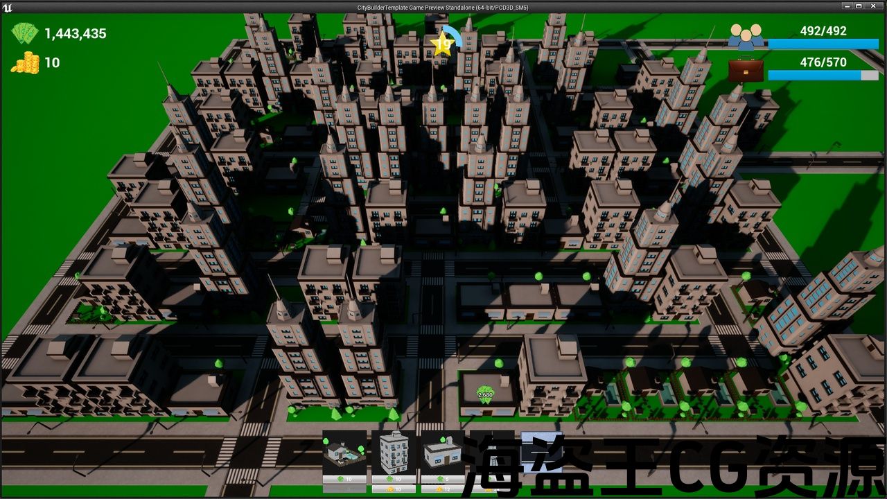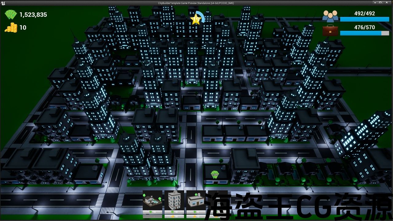 这个模板有两个不同的建筑,住宅和商业建筑. 它们都是从基类派生的,您可以使用它轻松创建新的构建类型。 开箱即用,此模板支持两种货币,它们是正常和溢价货币。 普通货币可以在游戏中赚取,而高级货币可以在游戏中以任何你想要的方式赚取(例如使用真钱购买或交易等)。