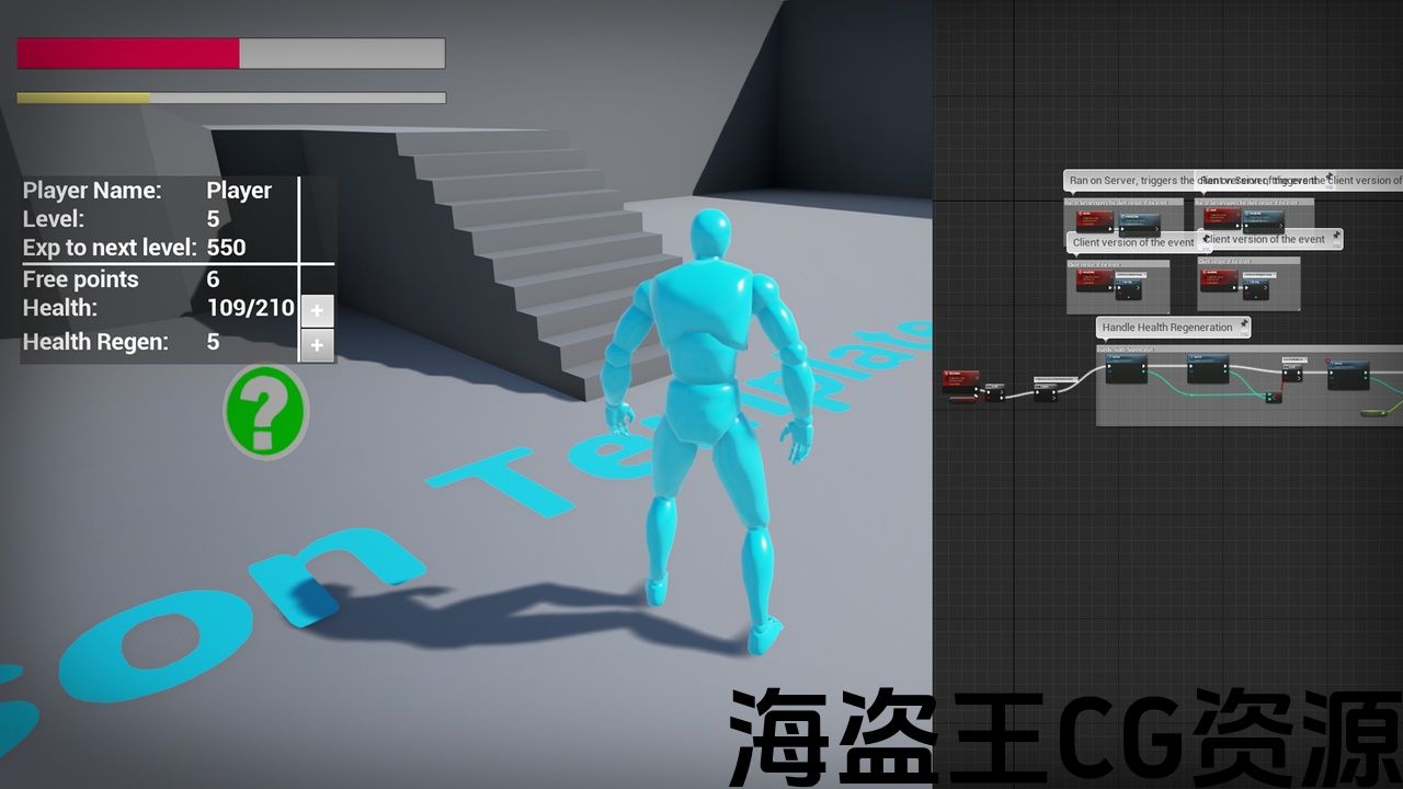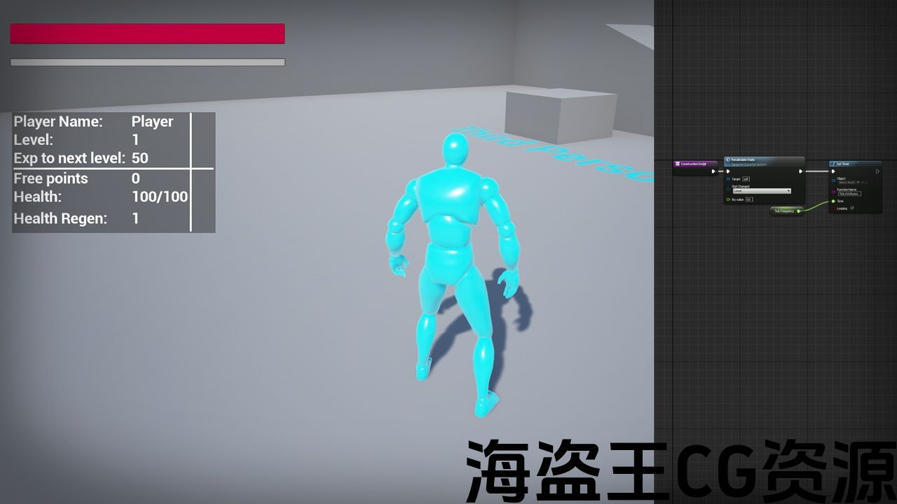 附带一个示例小部件,它有一个健康栏,等级进展栏,一个统计表显示升级所需的经验,当前级别,玩家名称,免费统计/属性点,健康和健康恢复。 属性,以及让你花费属性点来增加每个统计/属性的逻辑。