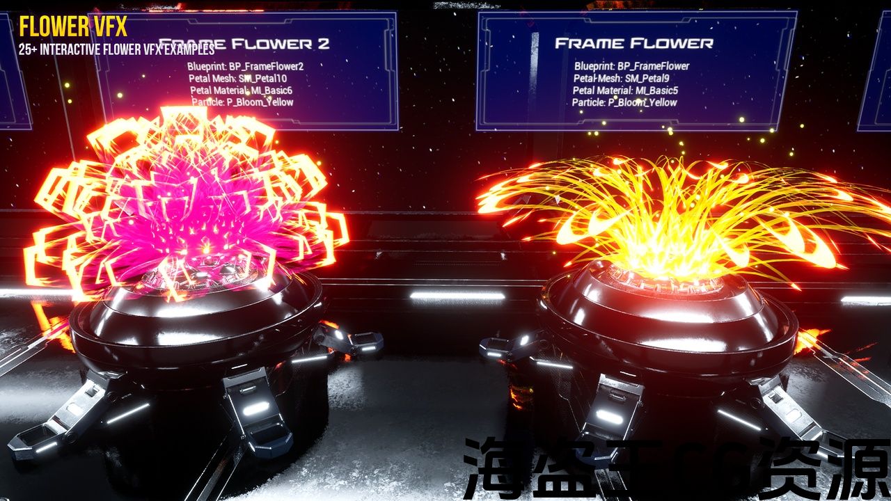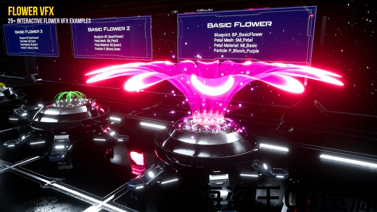 交互式花卉视觉特效包是一套25+花卉视觉特效示例,具有交互和动画、17+花瓣模型、13+花朵粒子和34+花卉材质,具有2+材质功能和32+纹理、4+科幻关卡设计模块,1+ 个展示模型和1+ 个太空天空盒。所有元素均可自定义(花瓣数量、轴、动画、花瓣形状、花瓣角度、比例、颜色、纹理、材质、粒子等)。