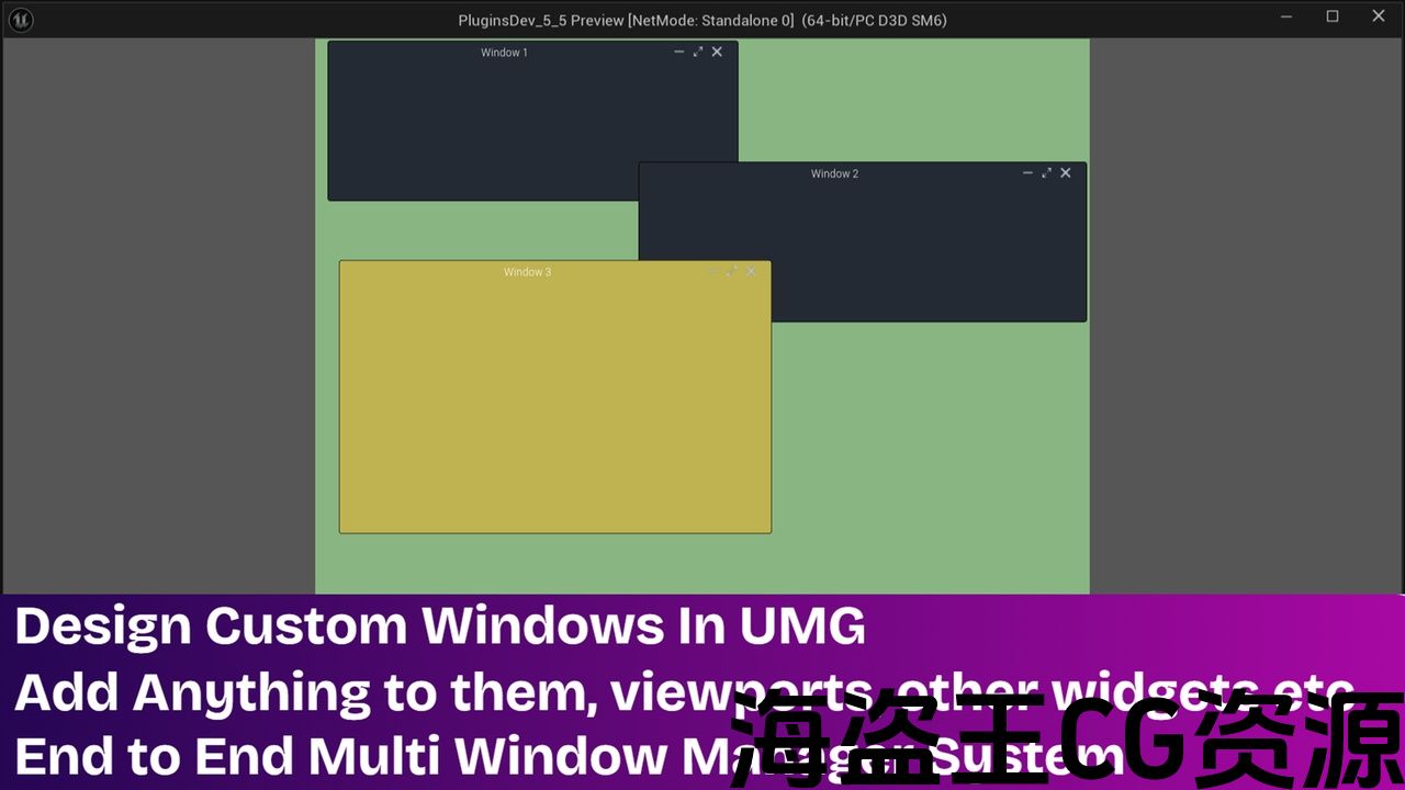 通过创建多个窗口来托管和组织 UMG 小部件,避免 UI 混乱。该插件具有支持 UMG Widget 和 3D 视口的内置窗口系统,允许您: