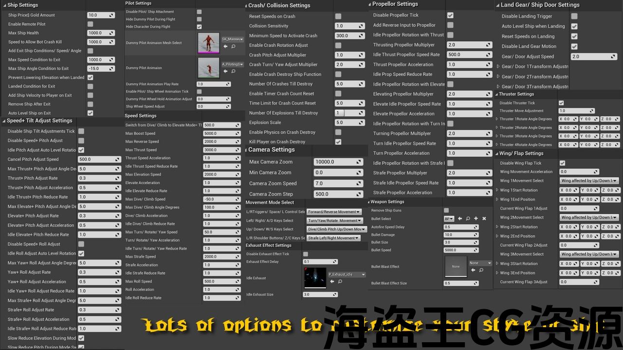 许多选项可帮助您创建大量不同风格的飞机。非物理碰撞和飞行系统。