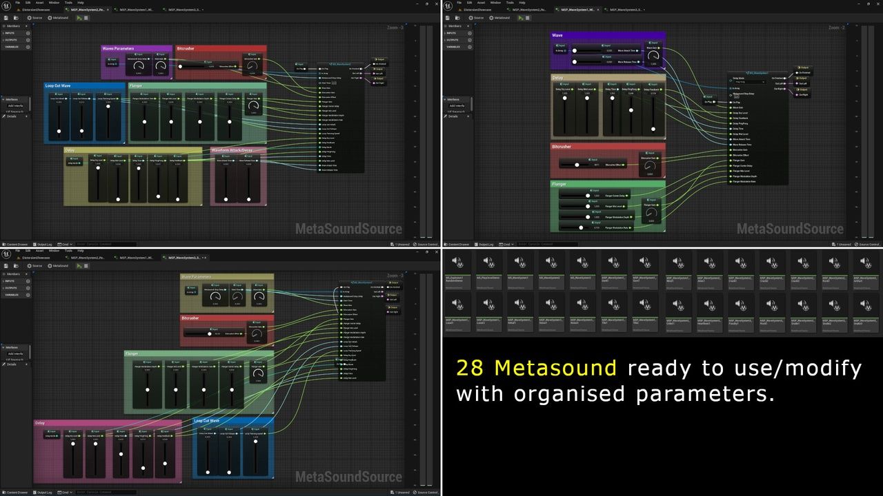 Enhance your Spatial Distortion using one of the 120 Niagara system, and one of the 28 Metasound system included.