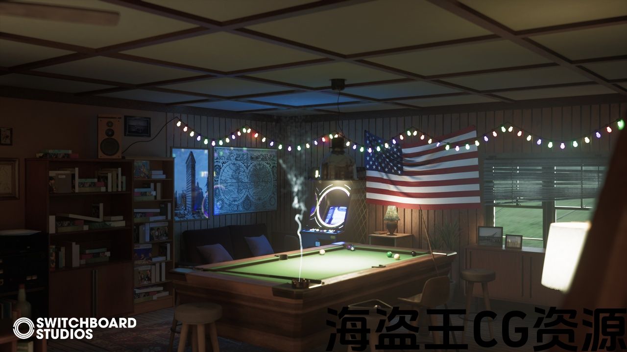 • 详细道具:棋盘游戏、骰子、卡片、微缩模型、书籍、书架、椅子、桌子、灯具和装饰