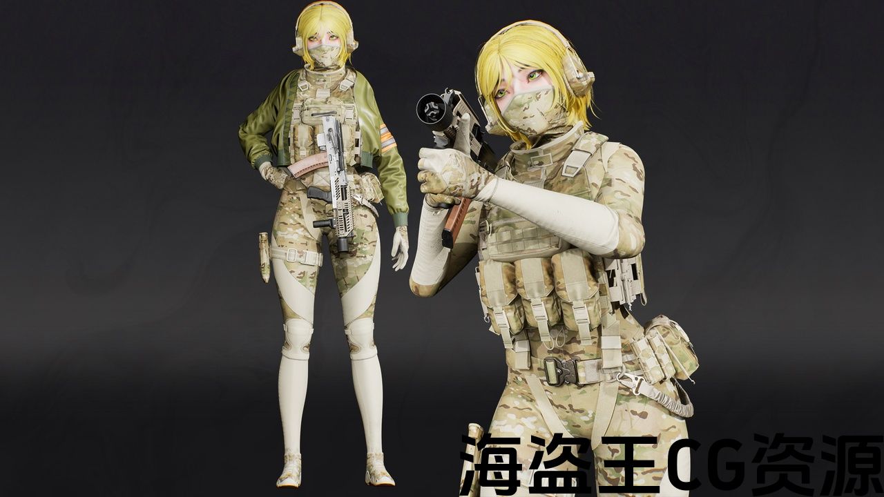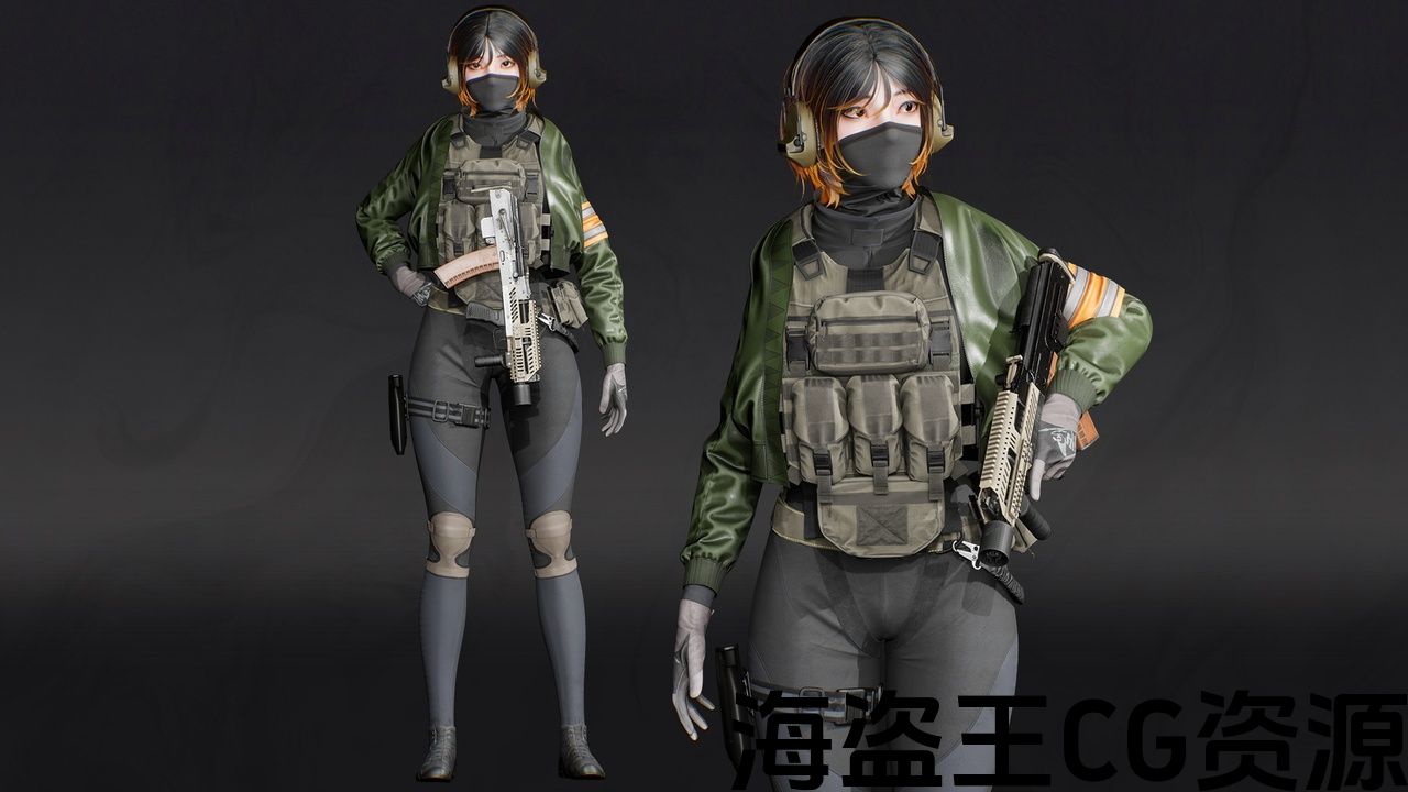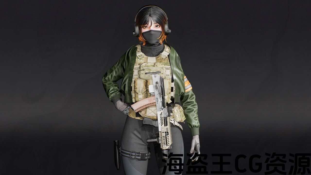 纹理分辨率:1K – Pist_Holster 和绷带,2K – 眼睛、靴子、耳机和面罩,4K – 其他