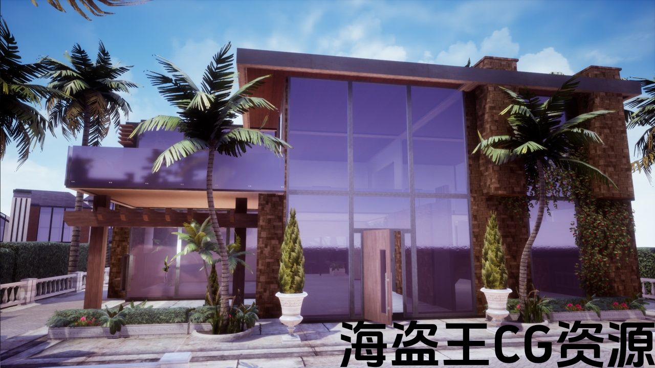 示例关卡向您展示可以使用外部、内部、道具和植被创建的内容。内部设有厨房、电影室、卧室和浴室,可供探索。还包括灯光和后期处理效果,为您提供在屏幕截图中看到的游戏就绪艺术。