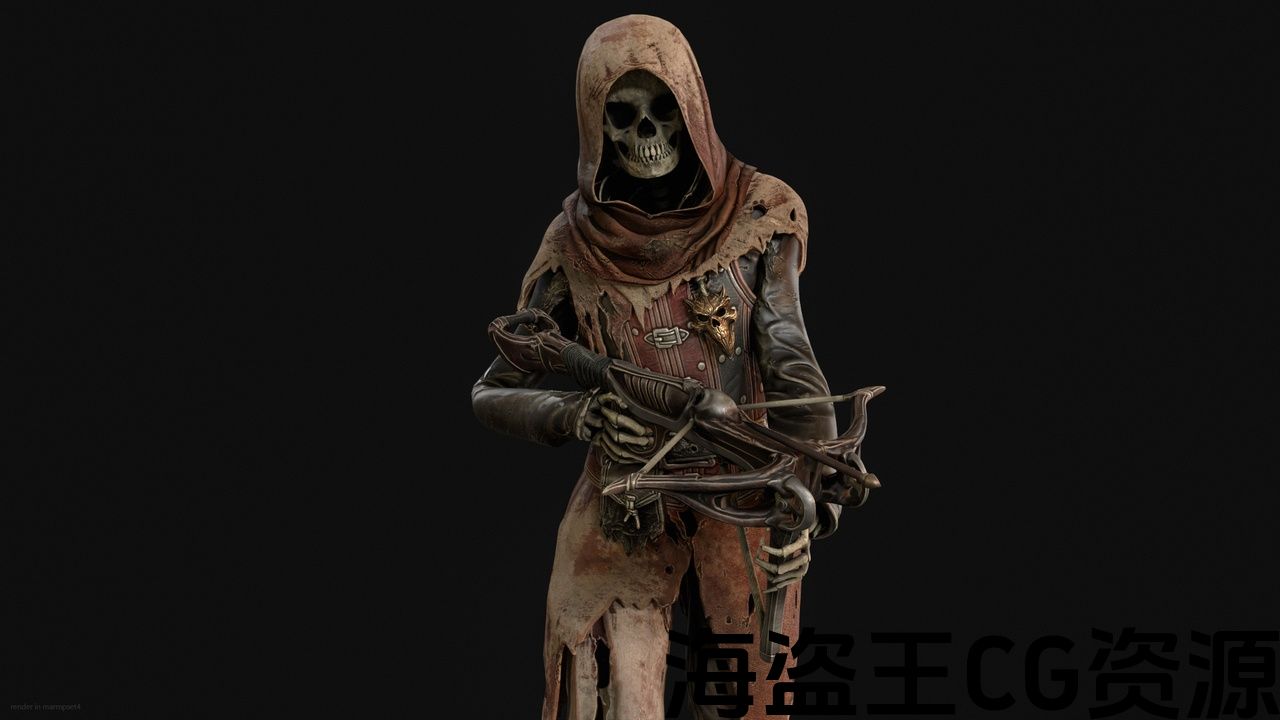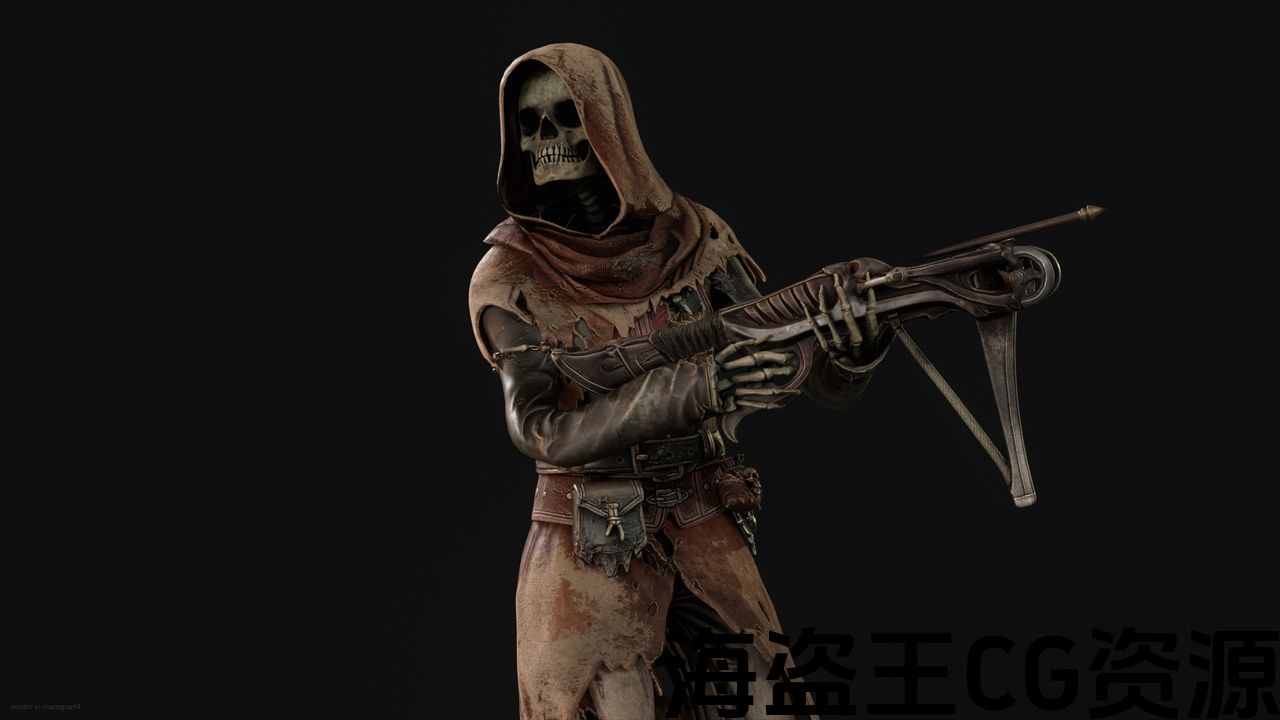 角色骷髅CrossBowMan2的低多边形模型