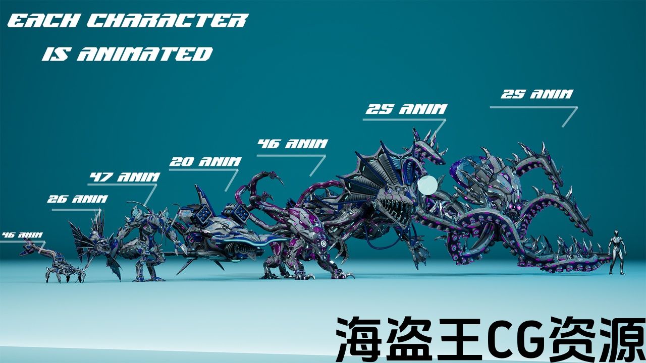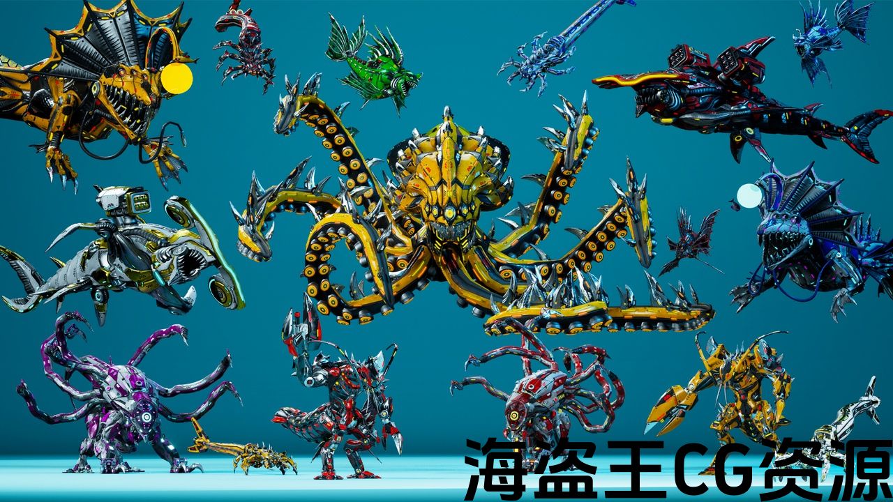我们已经完成了水下怪物角色包的制作 – 角色包将包含 7 游戏就绪角色