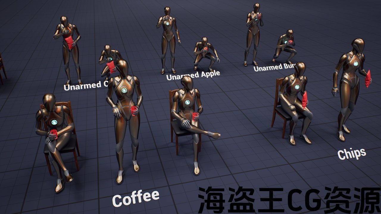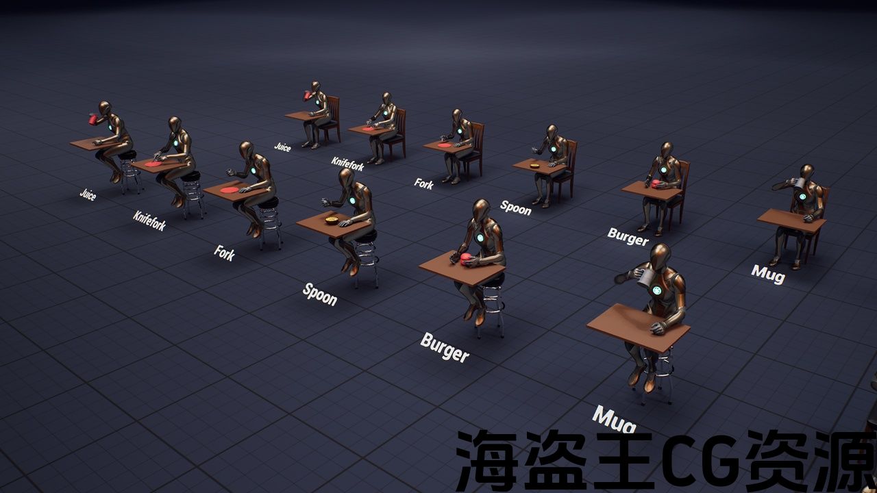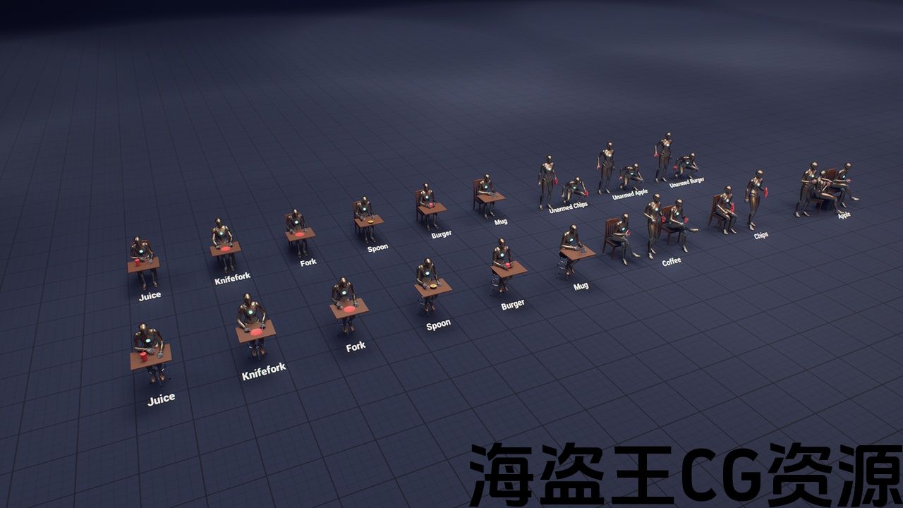 本产品包含 26 个高品质 NPC 动画,可以集成到您的游戏中。它包括咖啡馆和街道的饮食动画。