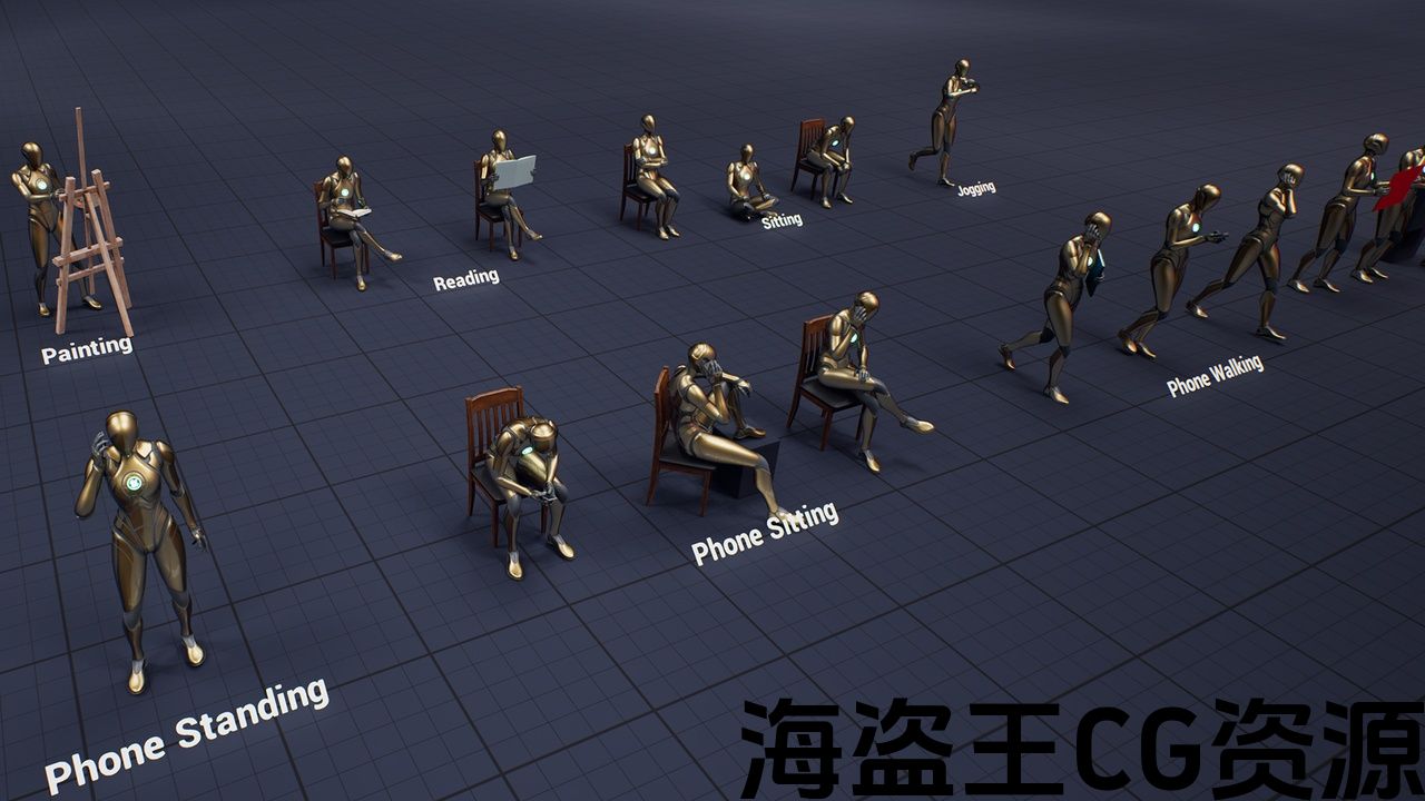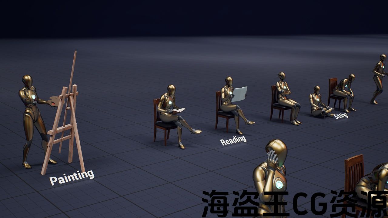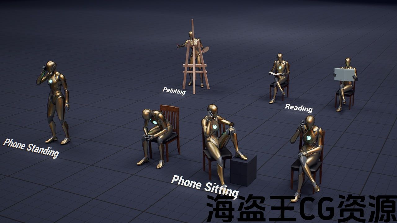 本产品包含 20 个高品质 NPC 动画,可以集成到您的游戏中。它包括电话、绘画、阅读、各种坐着和站立的NPC动画。