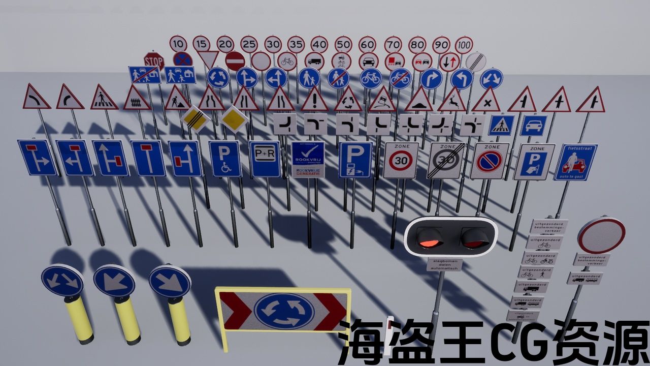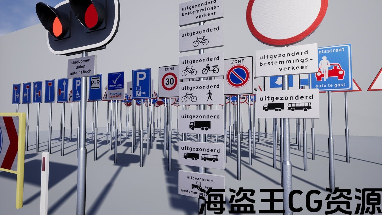 94 个荷兰交通标志的集合!包括一个简单的配置器蓝图,让您只需点击几下即可创建和调整交通标志! (演示视频:https://youtu.be/Vf_SQhr7Cqk)。交通标志适用于建筑可视化或模拟,并具有荷兰道路上最重要和最常见的标志。缺少任何标志或有要求吗?请邮寄至:info@extrude3d.nl