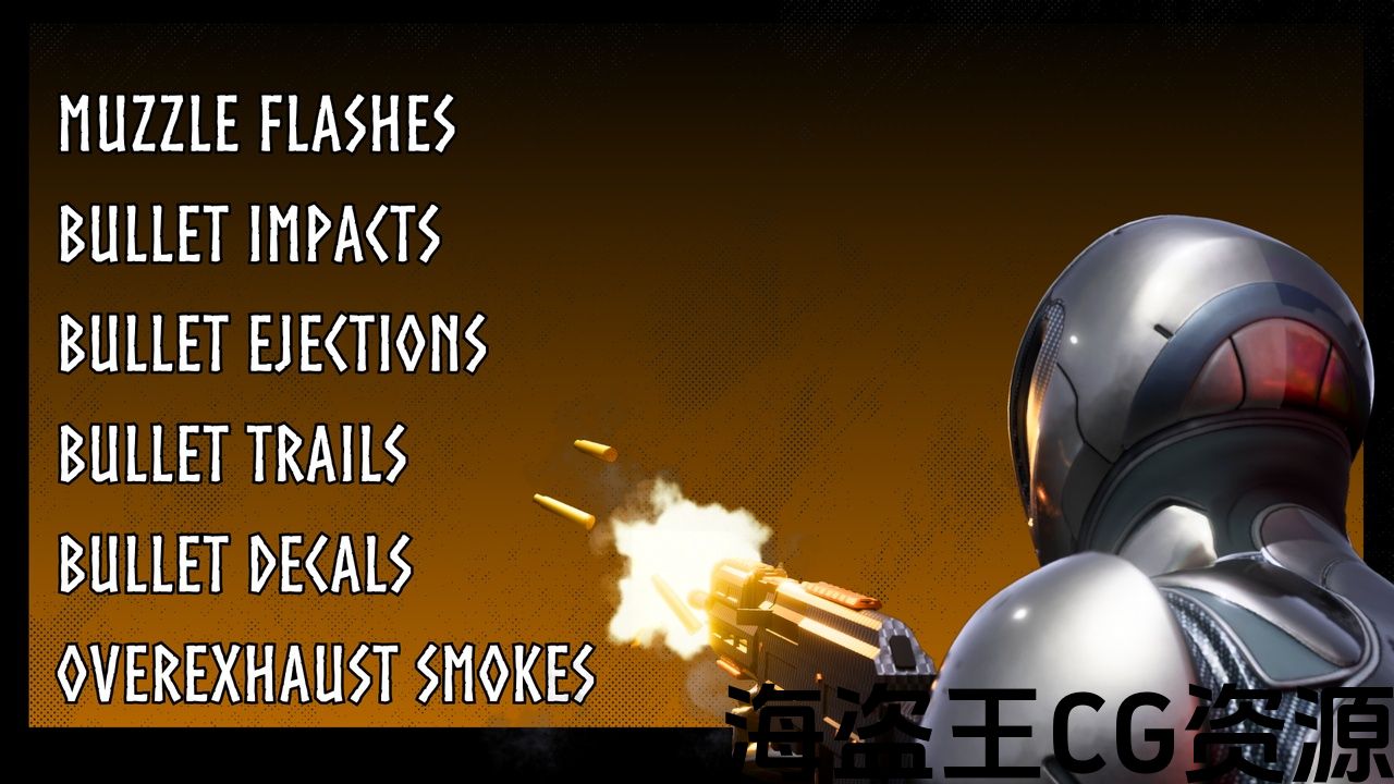 5 种武器类型,具有高品质枪口闪光,包括烟雾闪光、烟雾爆发和灯光。