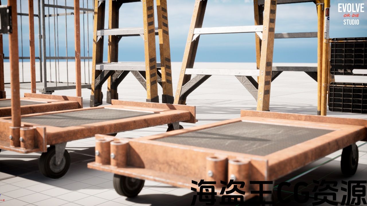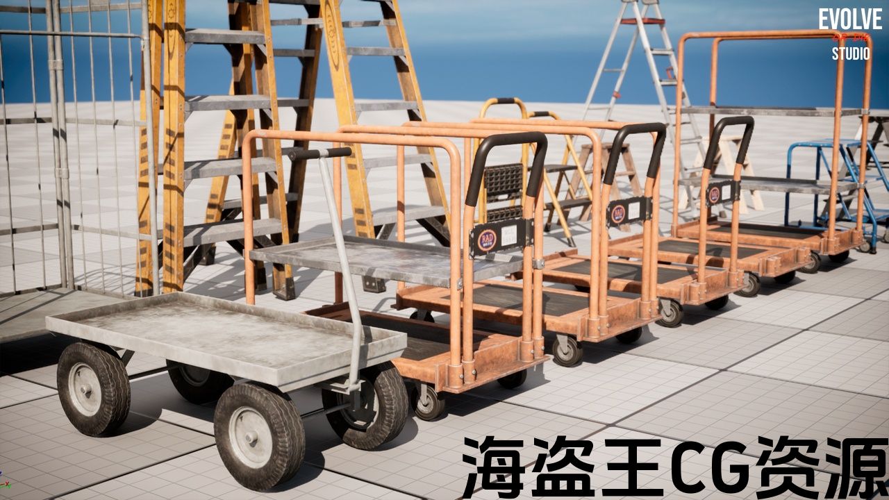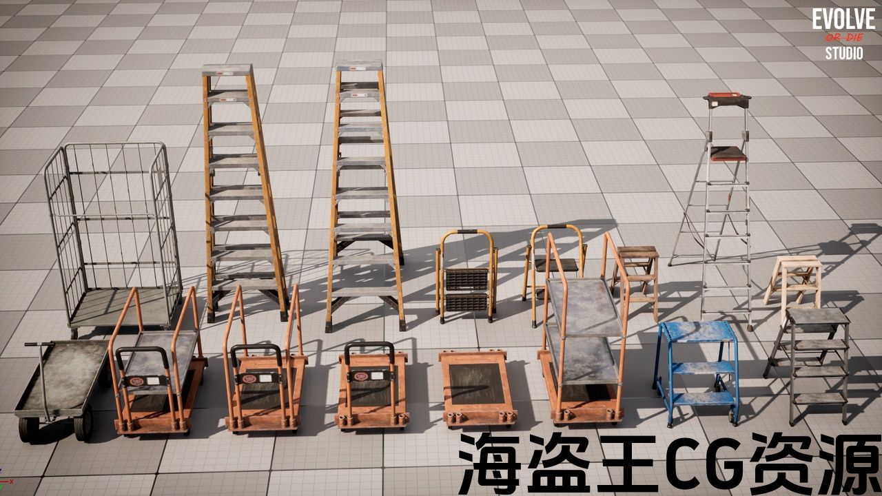 这款工业梯子和手推车道​​具包适合任何写实风格的游戏。