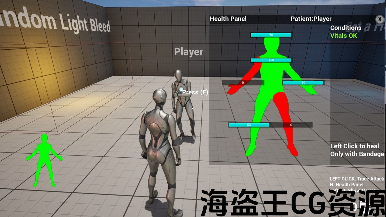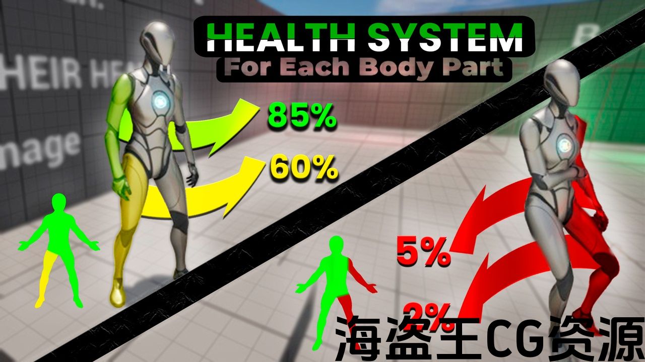 健康系统适用于身体的每个部位,我们的系统具有多功能性且易于使用。无论您是在创建第一人称射击游戏、动作角色扮演游戏还是生存游戏。