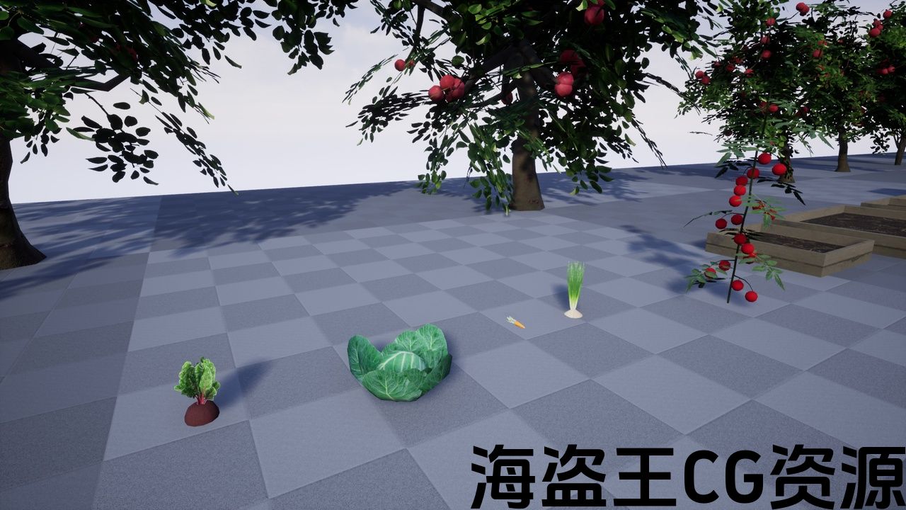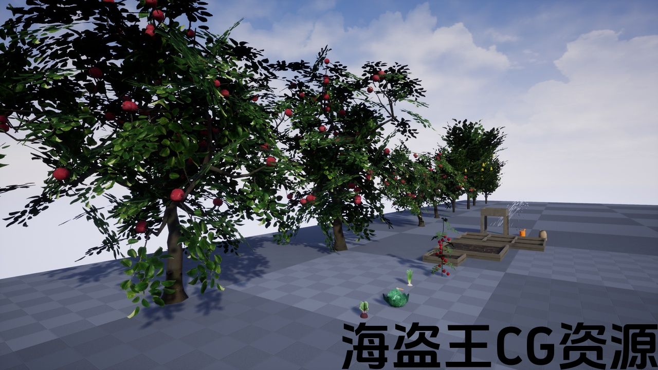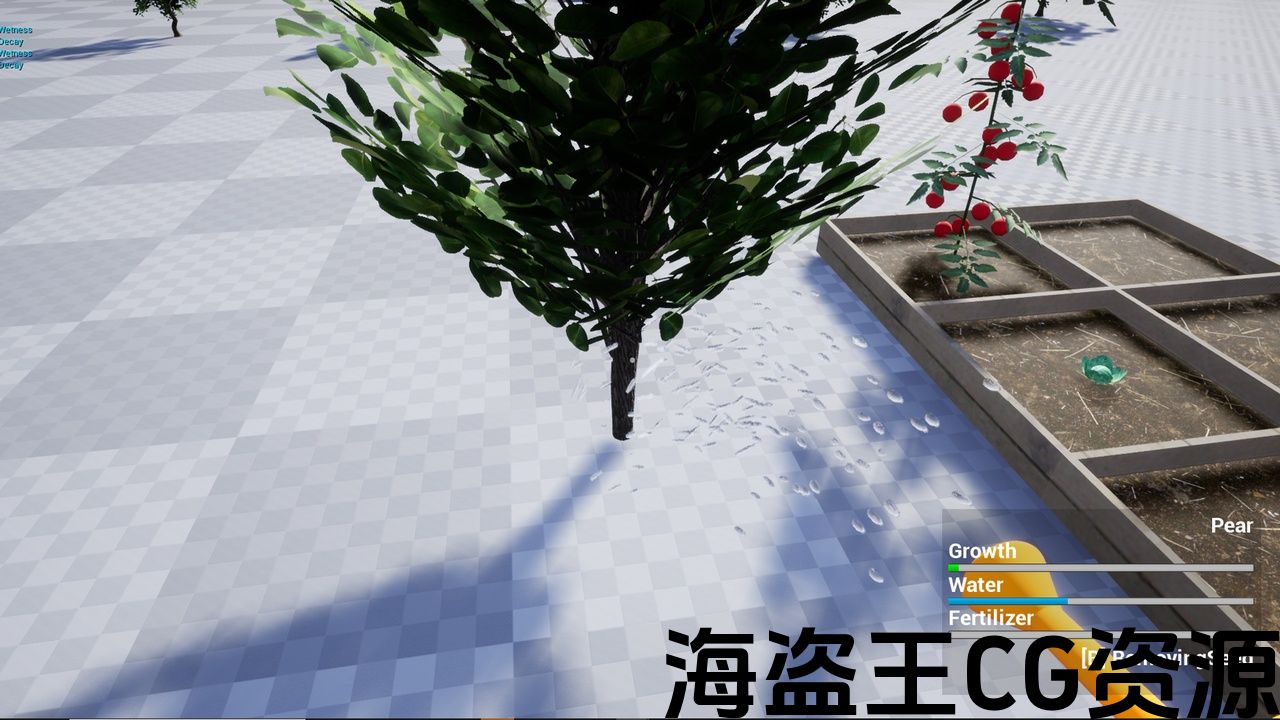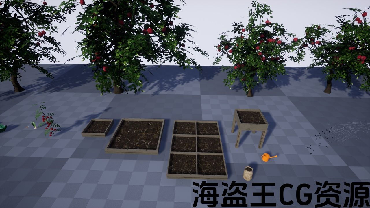 - Plants, beds, a watering can with a bag of fertilizers and 2 particles systems