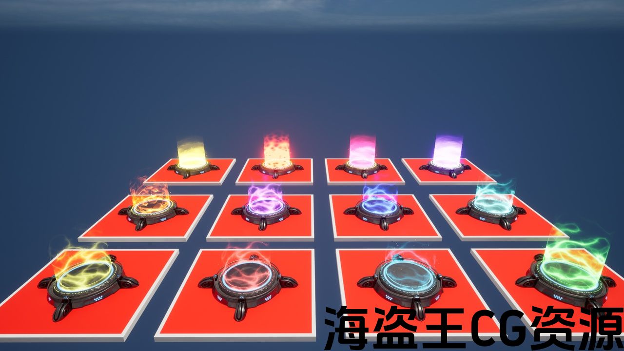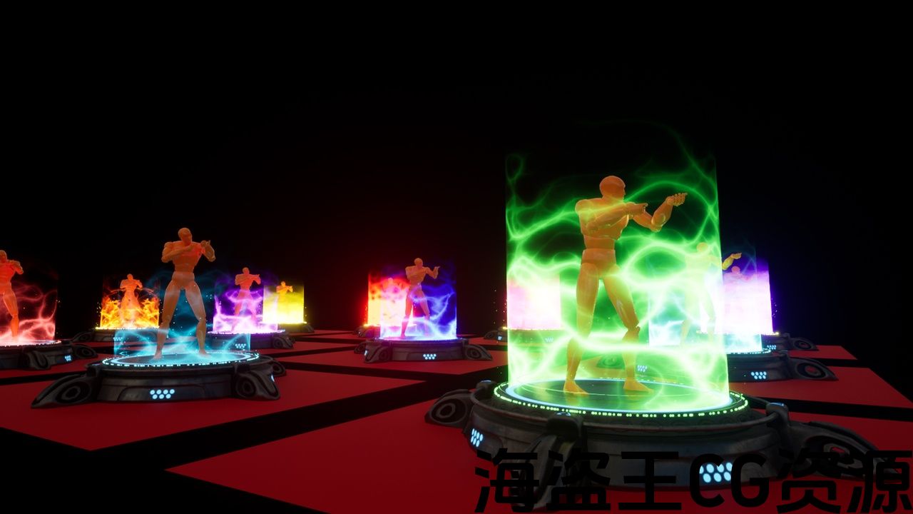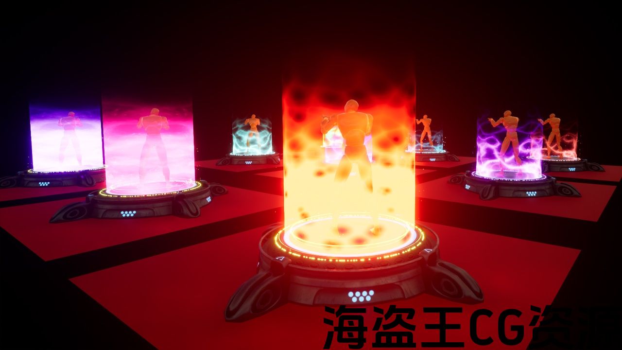 Futuristic holographic podium with customizable energy fields in vibrant colors.非常适合玩家生成、对象生成或传送。轻松调整颜色。易于集成!