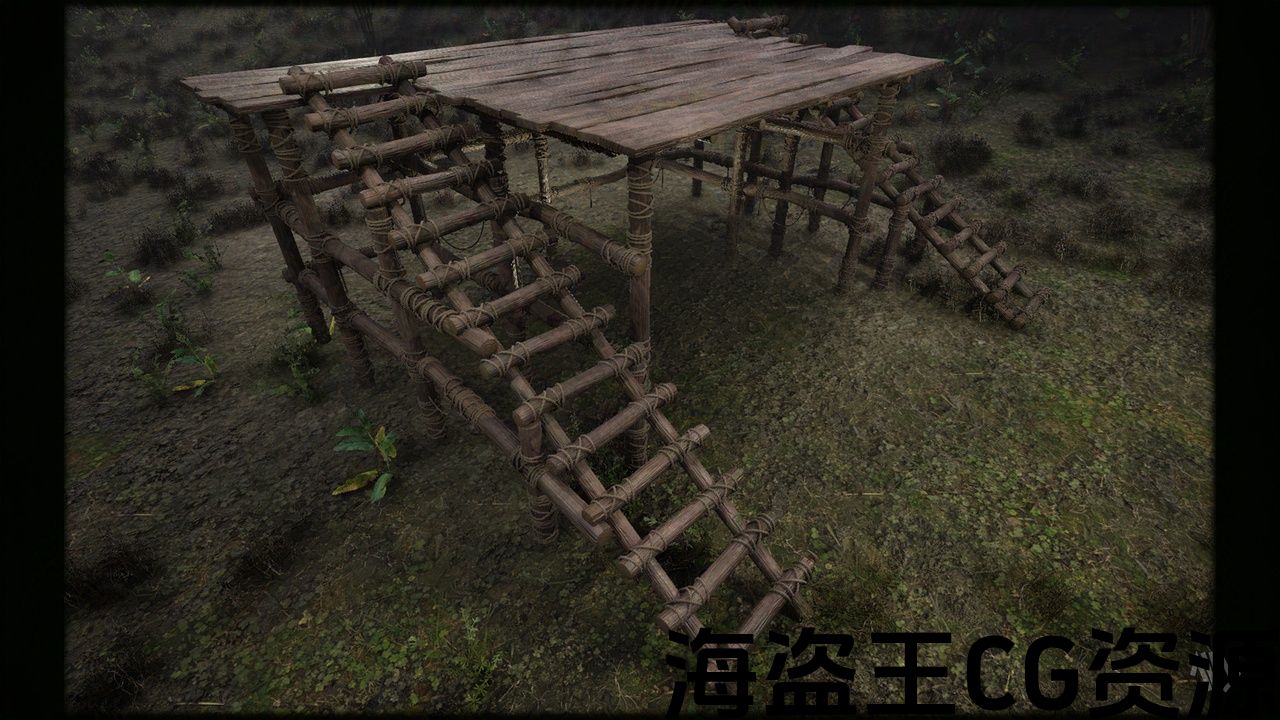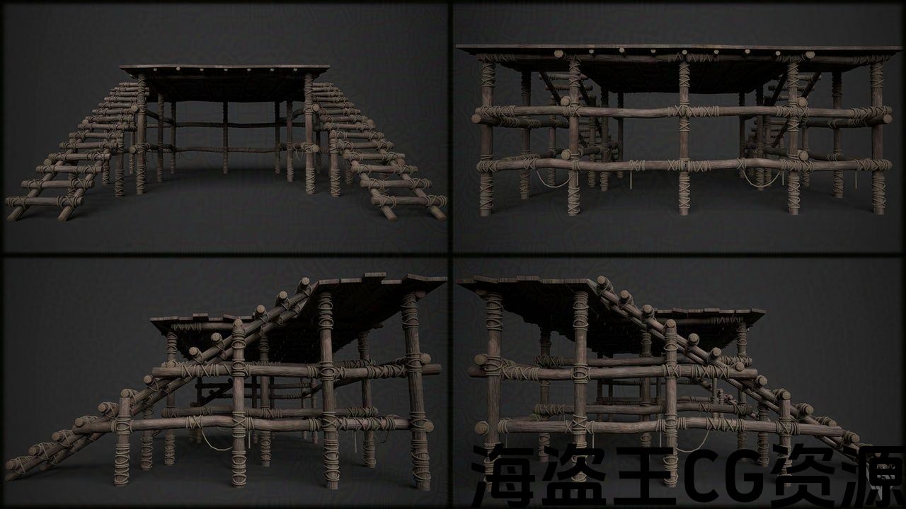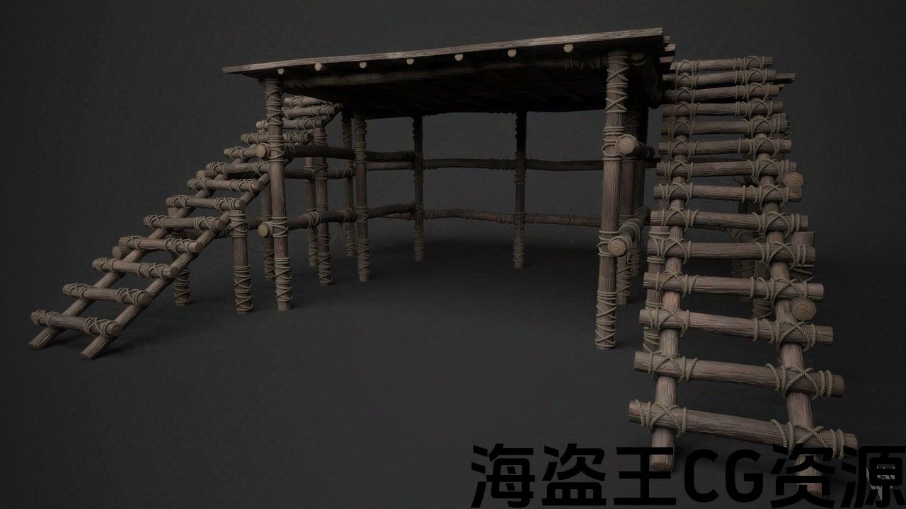 木制舞台。适合描绘用于公共广播或现场表演等的中世纪场景的道具。在 Maya 中建模并在 Substance Painter 中进行纹理化。