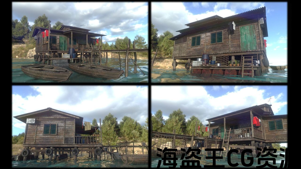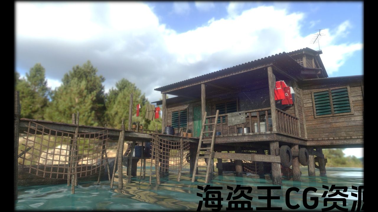 Sea Shack 适合河流和海滨场景的道具,具有东南亚的外观和感觉。以马来西亚婆罗洲巴瑶人的房屋为蓝本。在 Maya 中建模并在 Substance Painter 中纹理化。