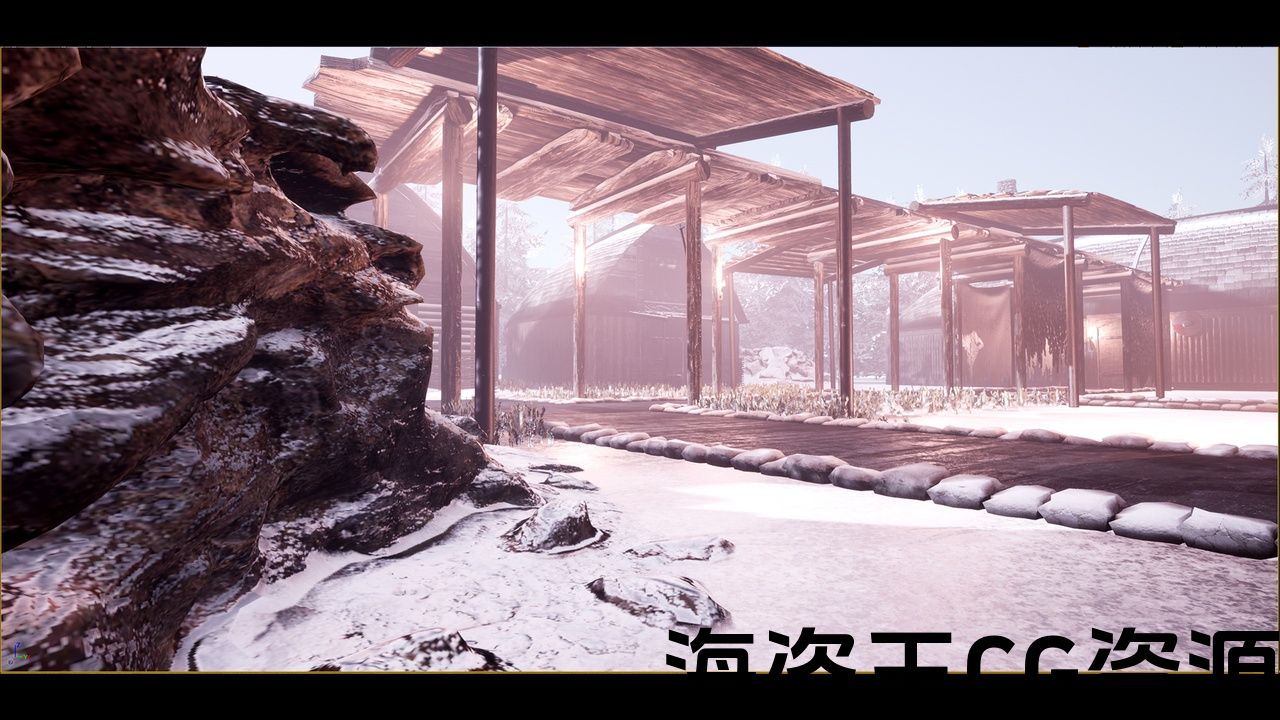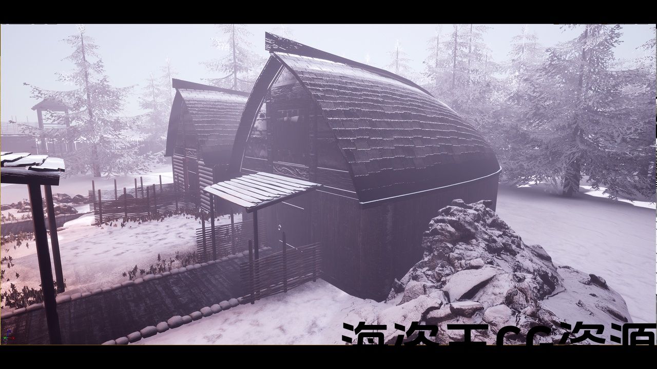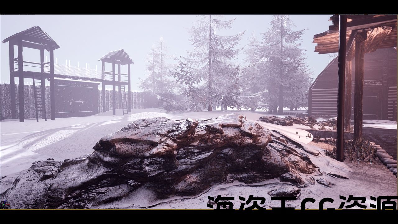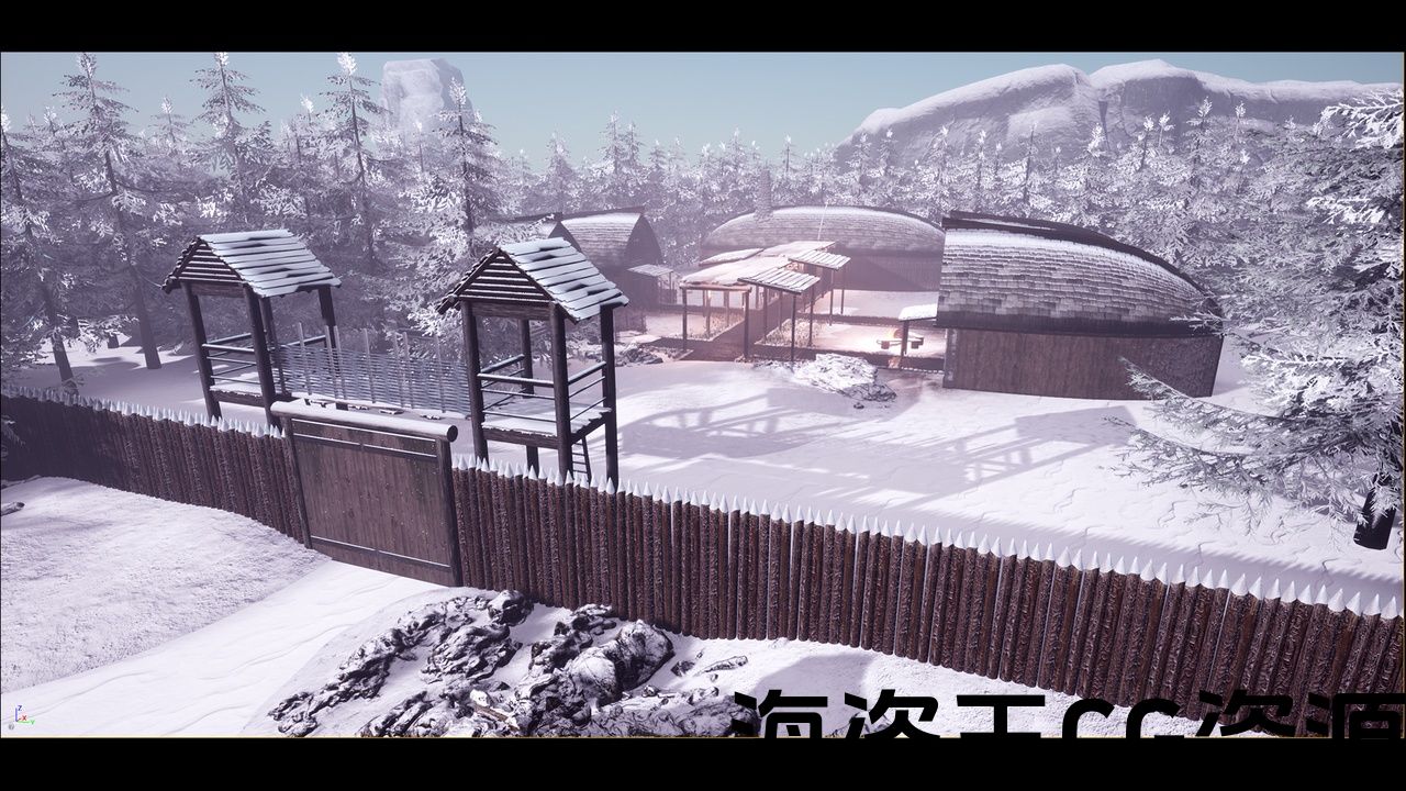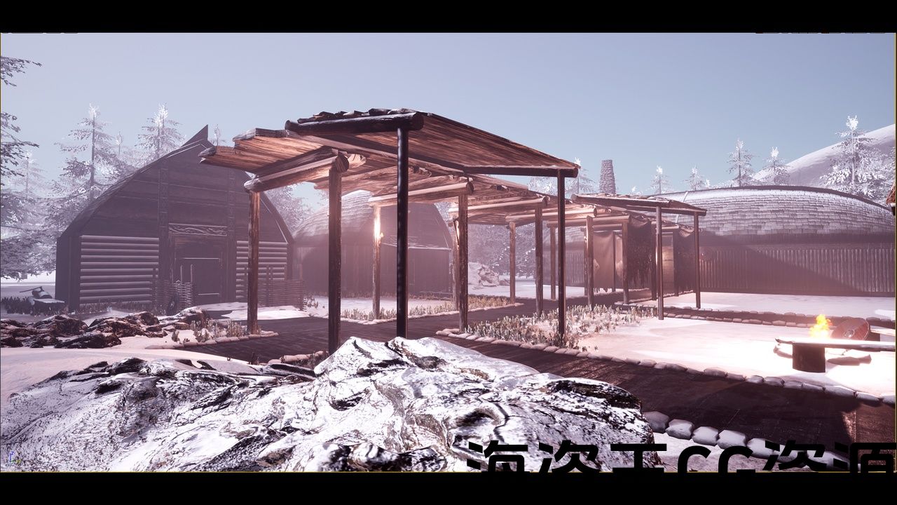 具有可定制和动态雪材料和高品质的现实维京村庄地图
