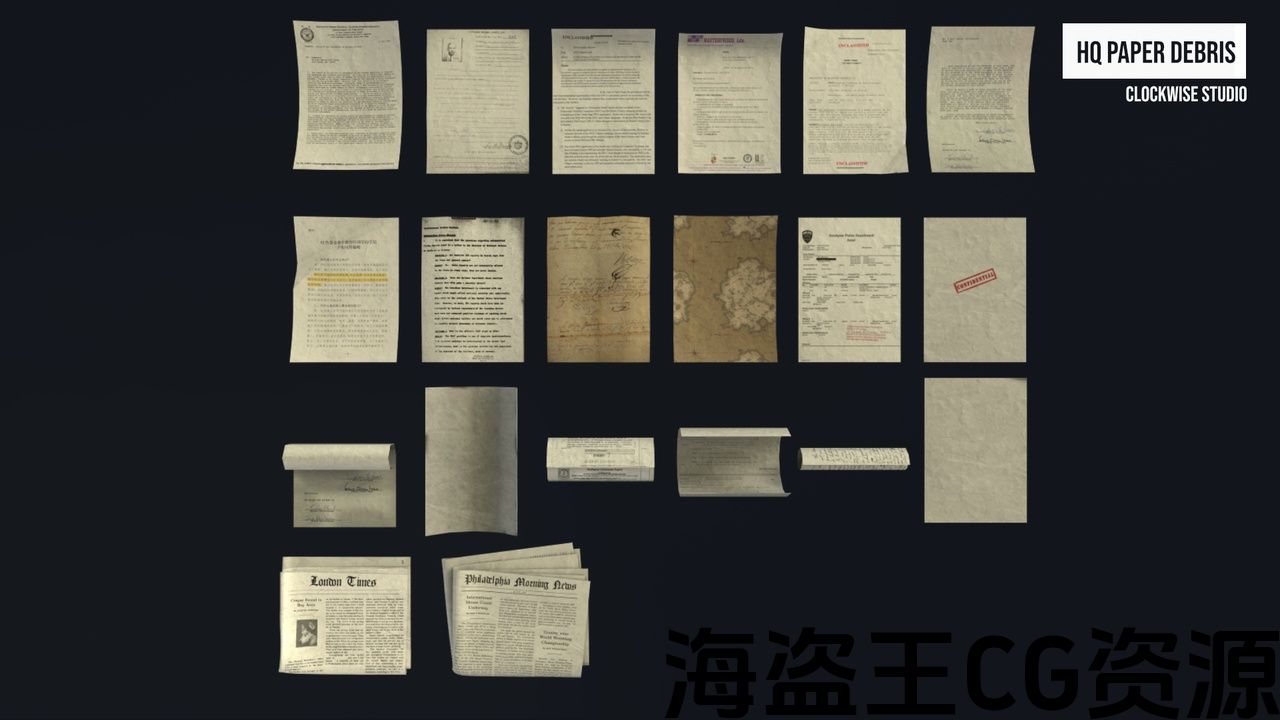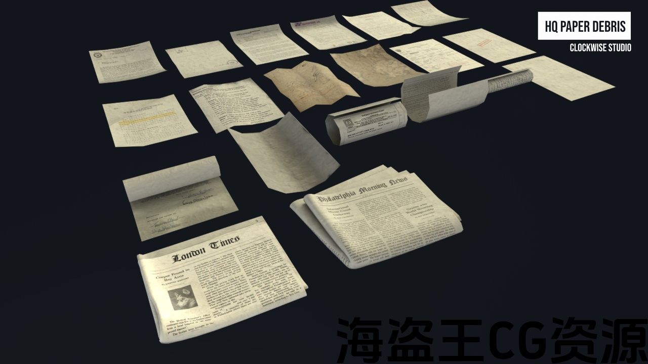 该产品包含一组 HQ 网格物体,可供您的游戏世界用作办公室或任何地板上的碎片或分散物体。