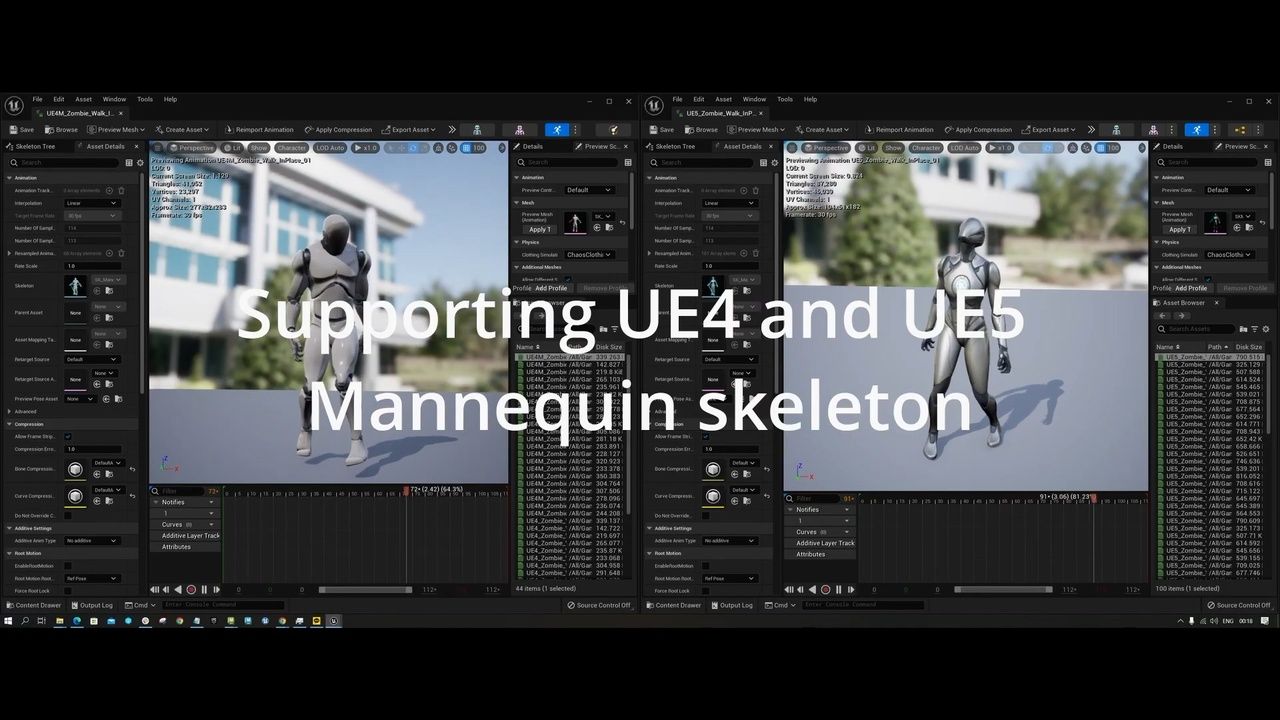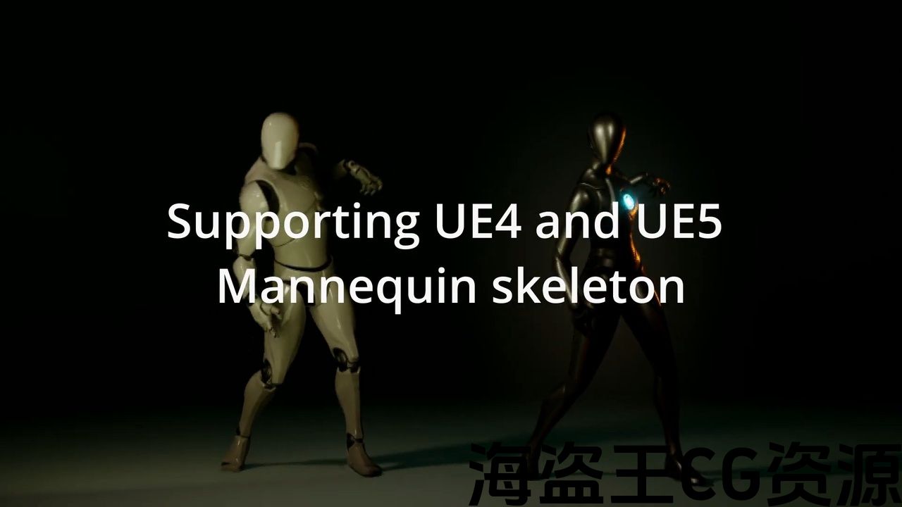 - 所有资源均具有 UE4 和 UE5 人体模型骨骼的兼容版本|