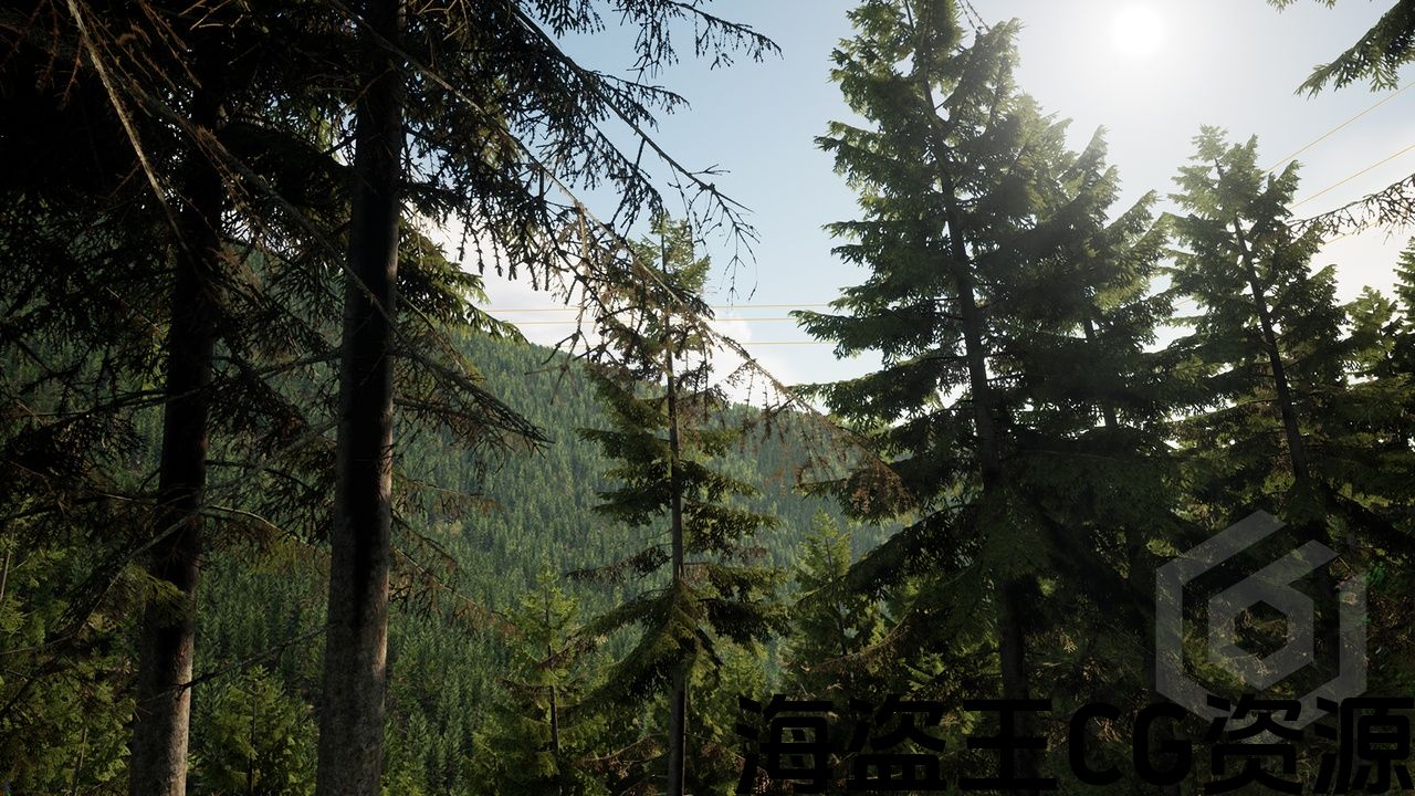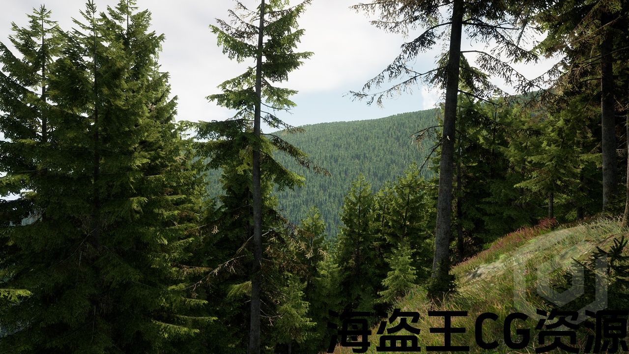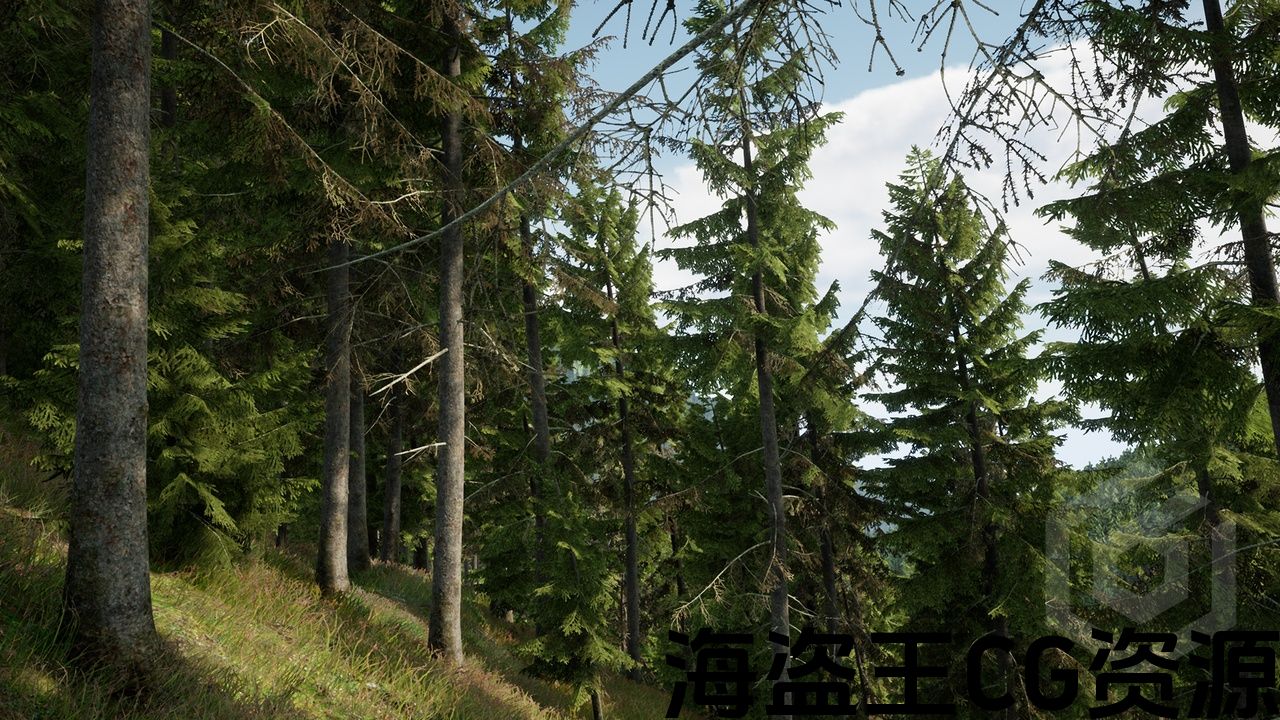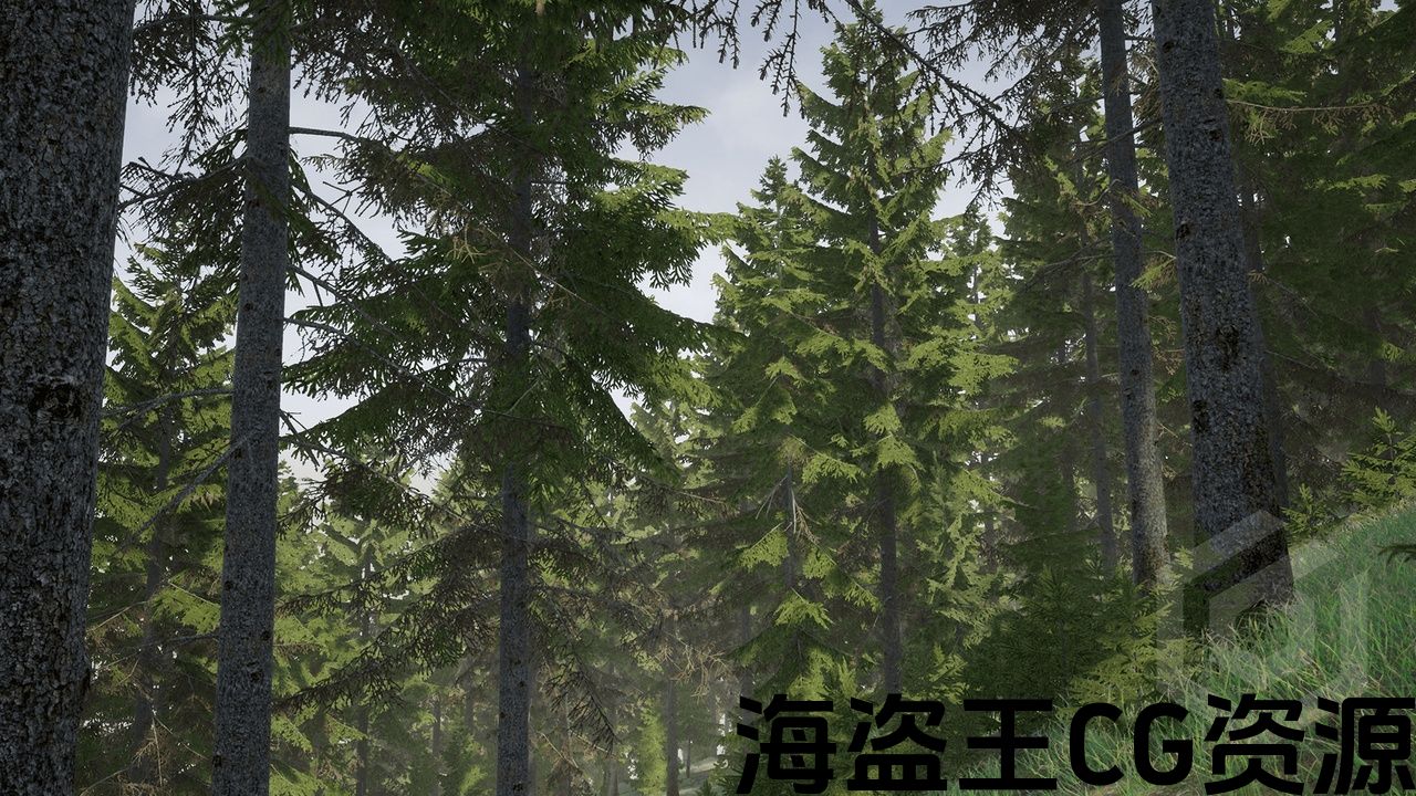 10 种独特的云杉树、1 个草模型、2 个地面纹理(森林、针叶)、展示场景