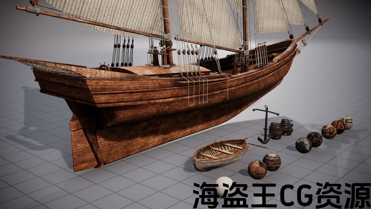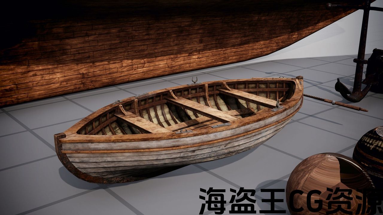 这款游戏就绪的木制帆船包括自定义碰撞和 LOD,以优化游戏中的性能。该套装还包括一艘带有桨、锚和破损桶的划艇;所有这些都是使用自定义碰撞和 LOD 构建的。通用的主材质可以轻松自定义每个材质实例。