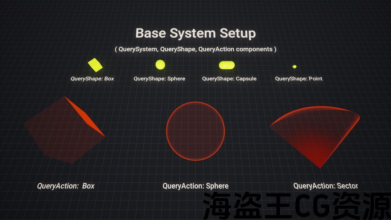 使用简化形式定义查询形状(点、球体、盒子、胶囊)和查询操作(球体、盒子、扇形)