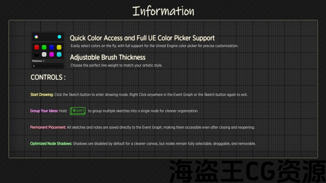 • 完全在蓝图编辑器中工作,无需 C++ 经验。直接画画即可。