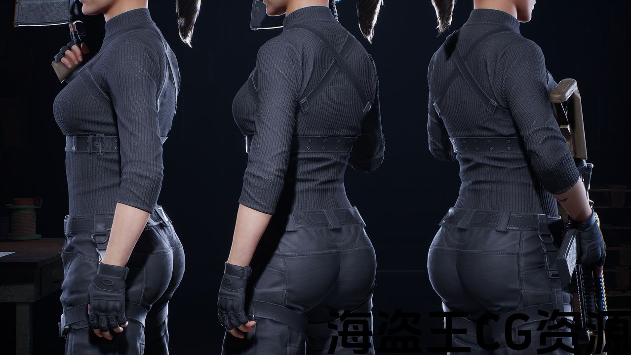 网格对于中近距离具有出色的优化。该角色可用于TPS。每个网格已准备好 4 个 LOD。水滴袋和腹股沟是物理对象,可以为角色增添真实感。