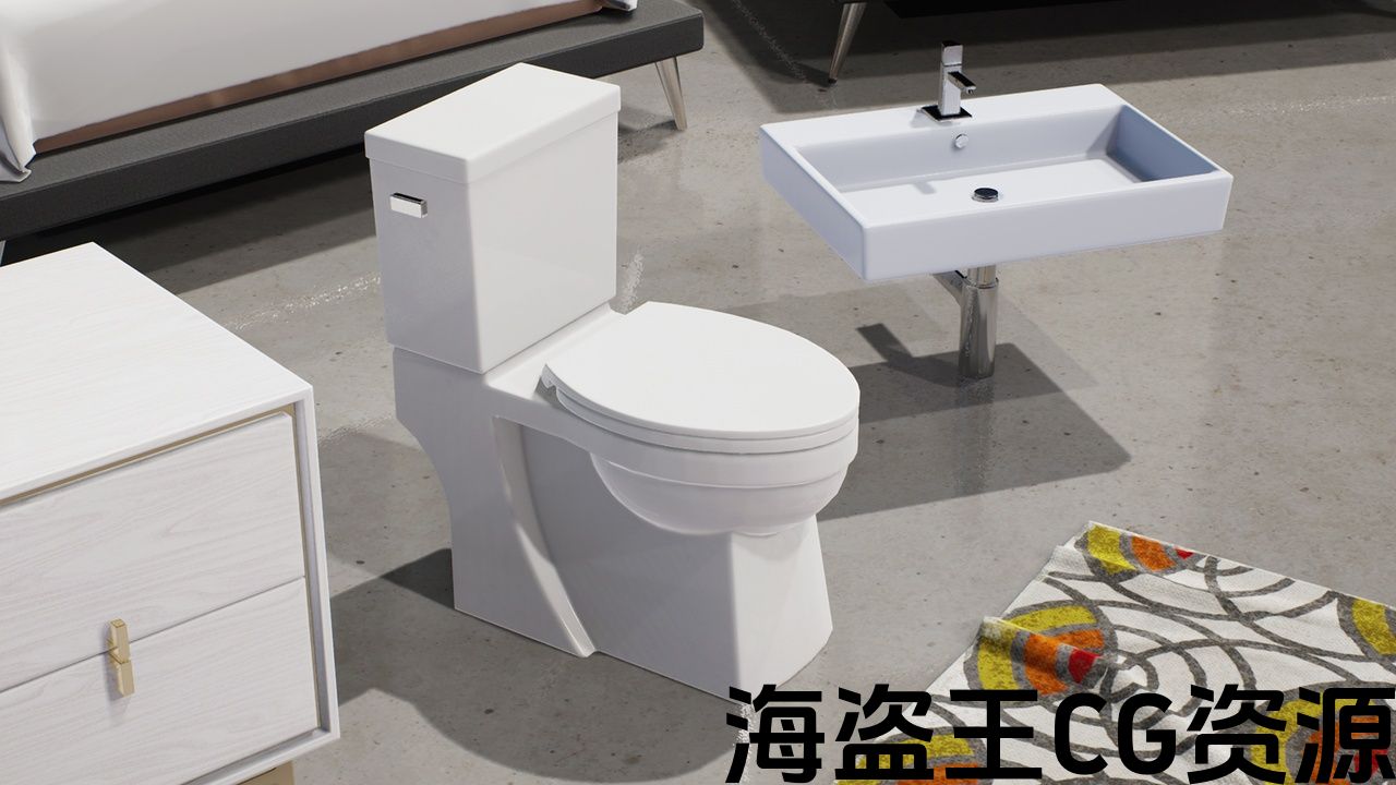 厕所被分成多个部分,以便于动画和放置