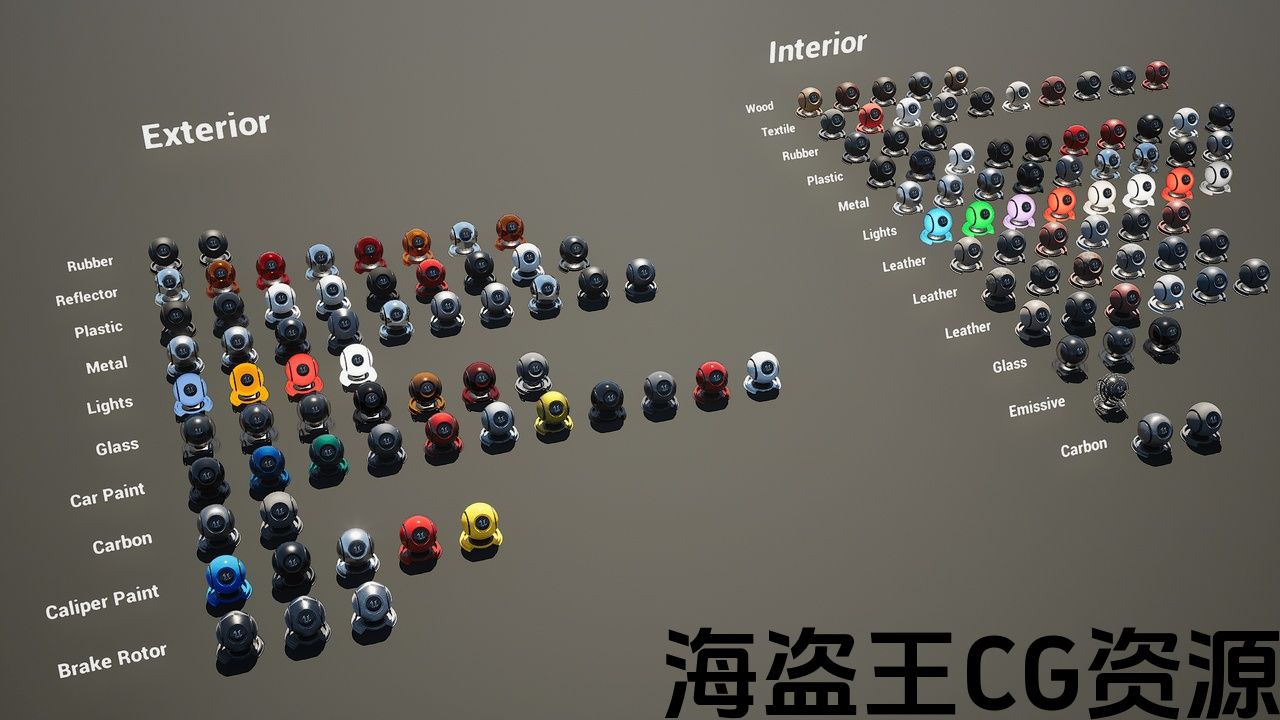 无论您是在构建概念车、实时配置器还是电影镜头 – 这些材料都能满足您的汽车项目所需的真实感。