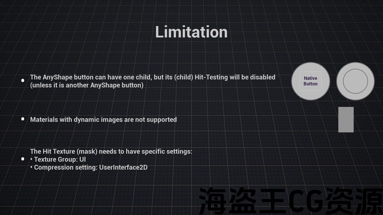 按钮的无限命中测试几何图形选项,允许按钮为任何形状,不限于本机按钮