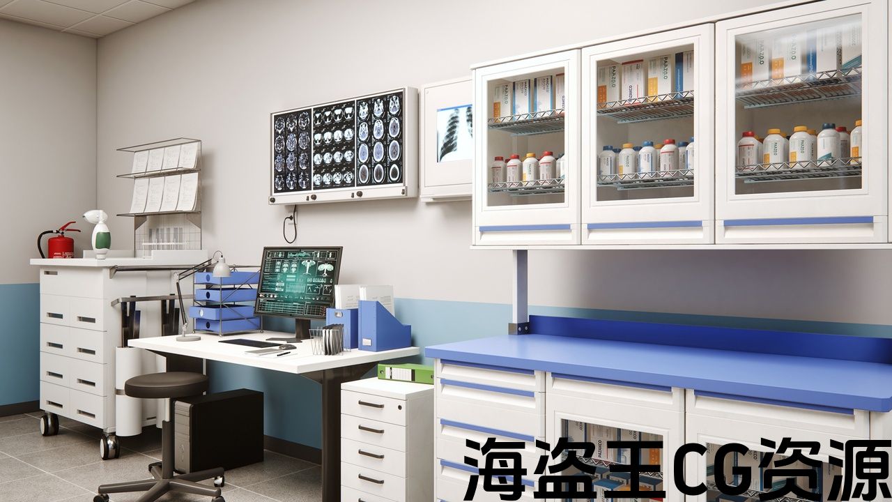 除了医疗设备除了设备之外,该系列还包括各种办公用品的 3D 模型:橱柜、办公椅、计算机设置、活页夹、记事本、书桌、桌子、复印机和文件碎纸机。