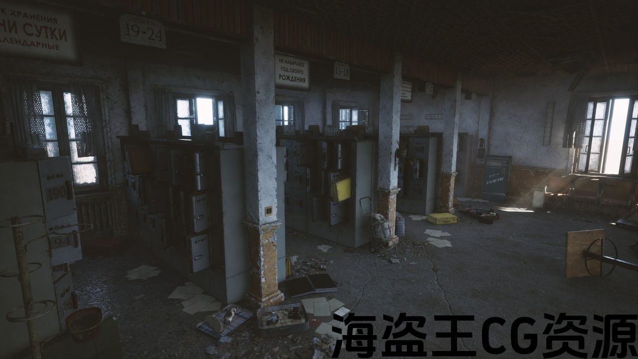 后世界末日风格的废弃车站。