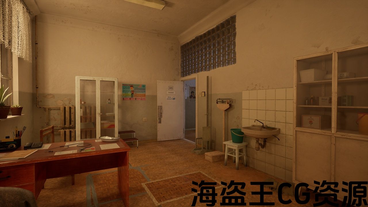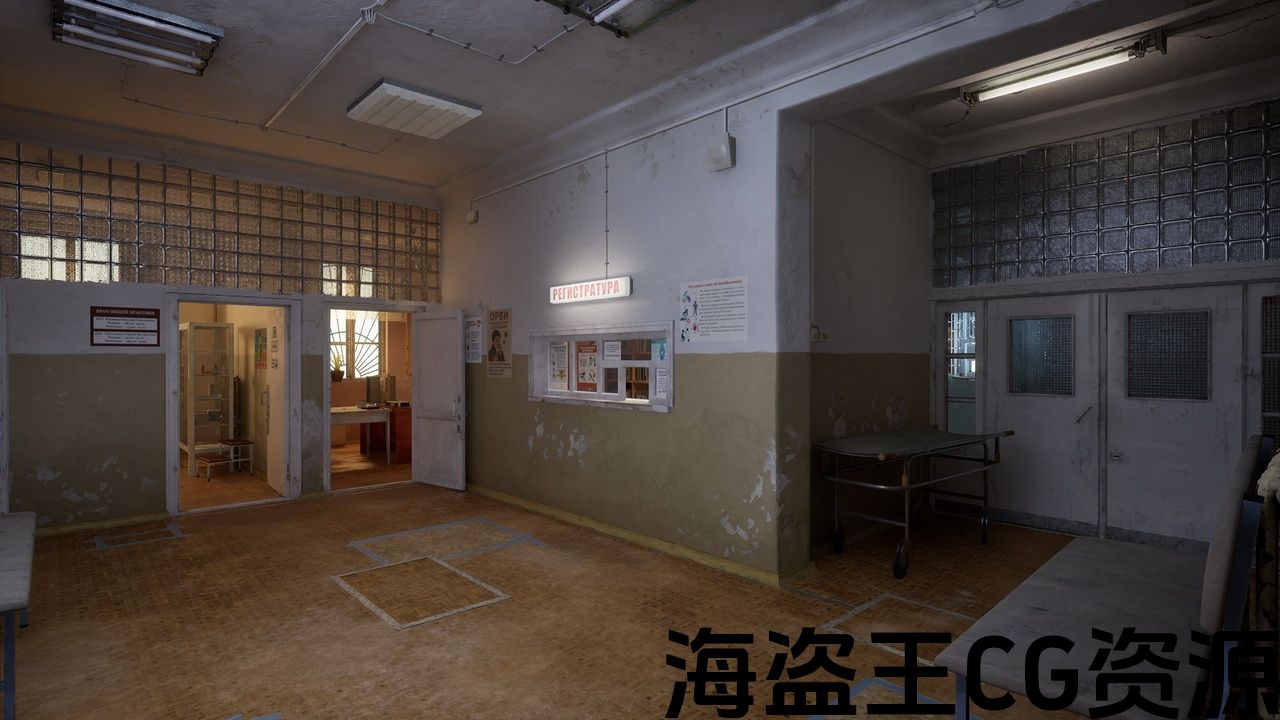 该资产包重点关注东欧医疗机构的管理和诊断基础设施。它包括医生办公室、X 光室、带服务窗口的接待区以及连接走廊的高度详细的环境,并配有公用存储区。该系列平衡了临床办公室美学与东方集团典型的真实磨损和功能设计。