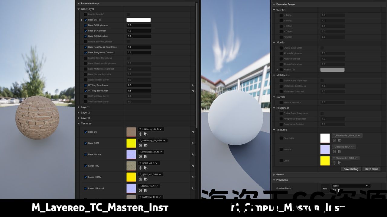 • 2个主材质(用于纹理颜色的M_Layered_TC_Master和附加的M_Simple主材质)