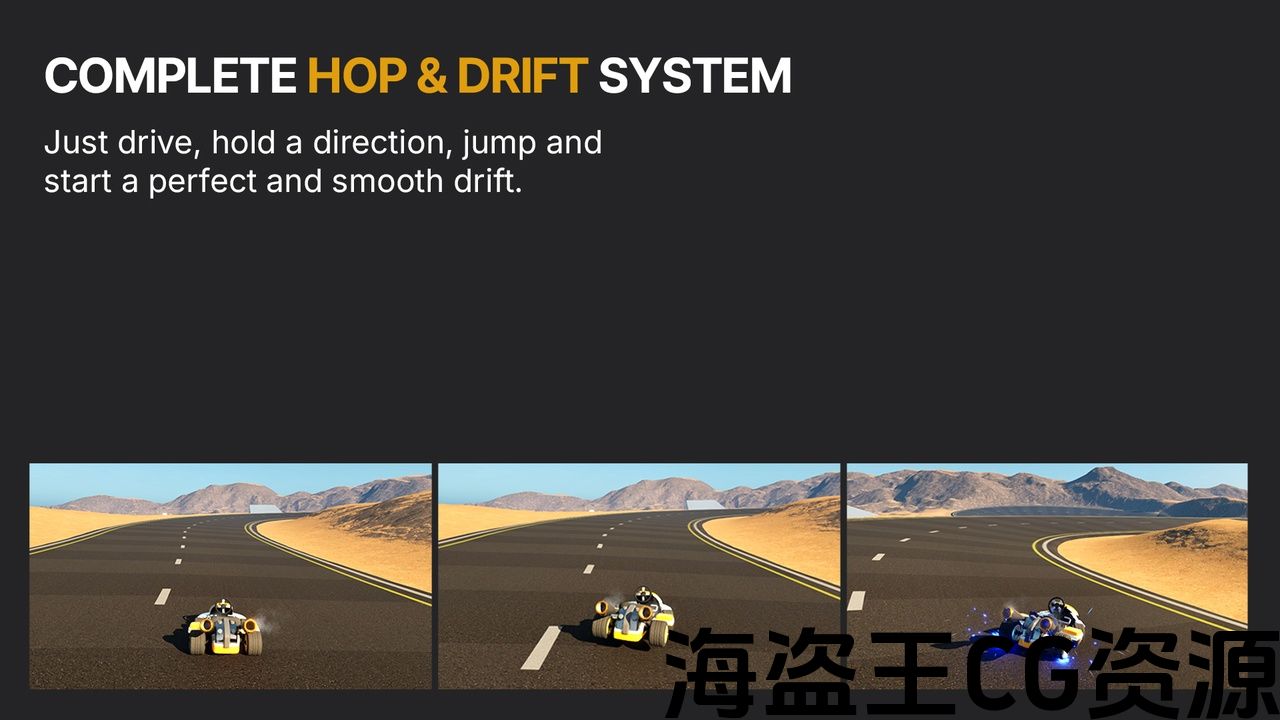 • 基于物理的跳跃和漂移系统,带升压功能充电