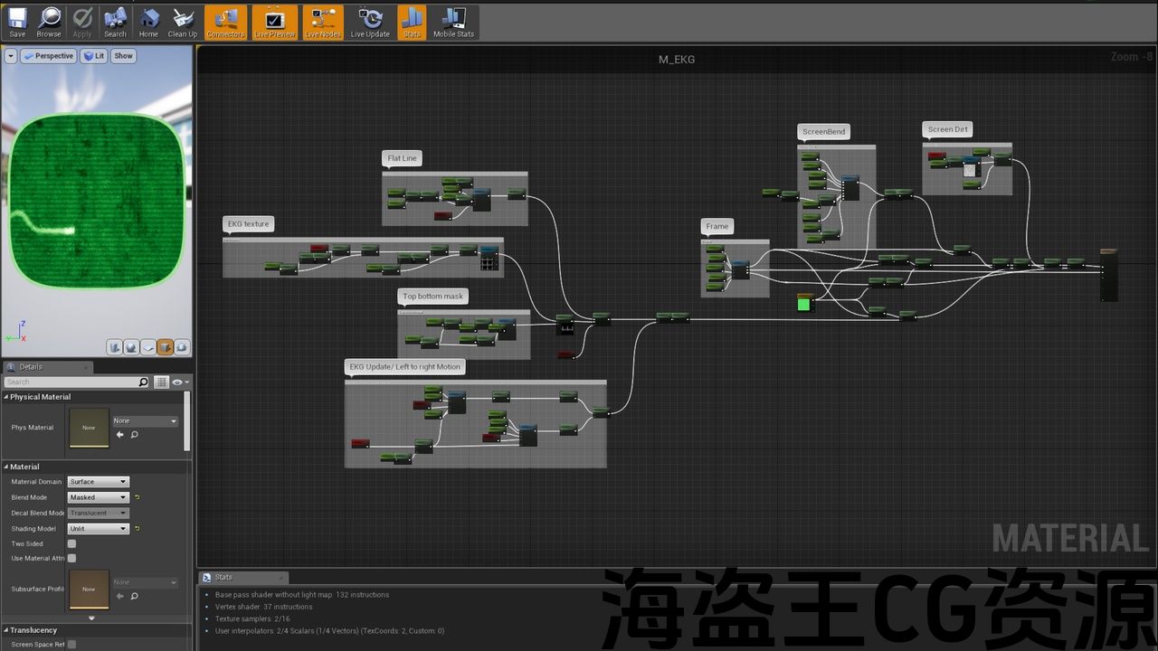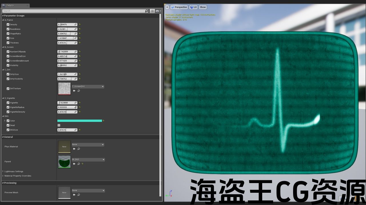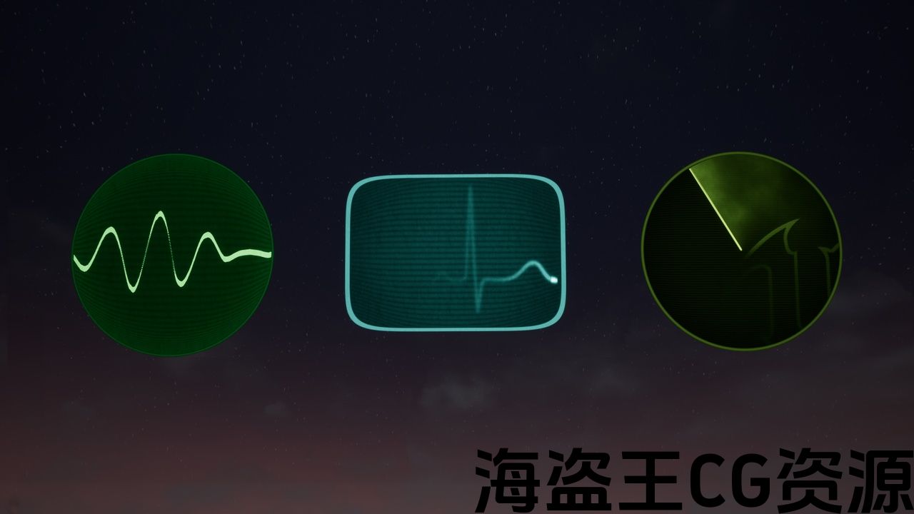 此资源包含 3 个材质实例,基于雷达、心电图或心电图监控屏幕的 3 种材质振荡器。