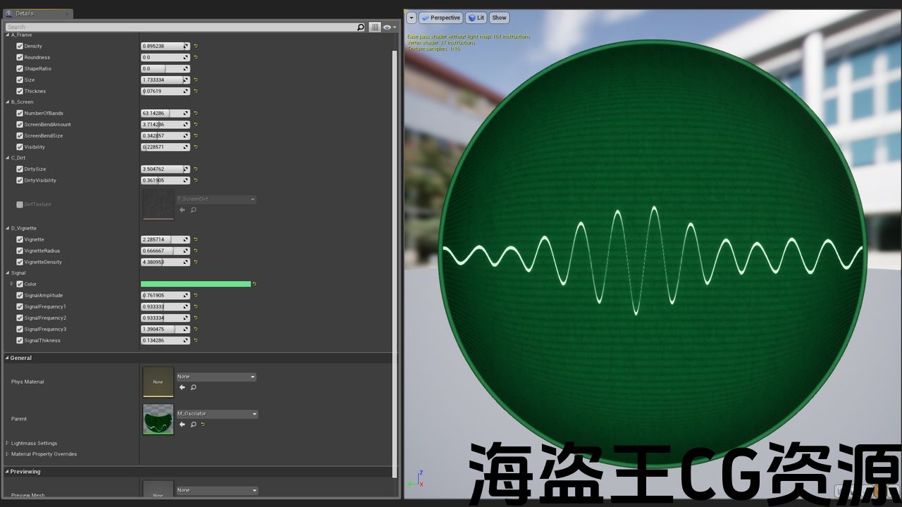 •  材质实例,带有用于设置屏幕上信号显示的变量。