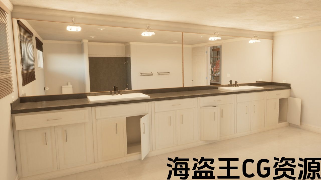 还包括静态资源,这些资源不属于任何蓝图的一部分。 架子,镜子,水龙头,沙发和椅子,桌子和栏杆。 总共有大约841资产。 但是,蓝图使用其中许多资源根据比例自动选择合适的资源。 这是为了让事情保持一致。 例如,墙蓝图有一个”目的地”节点,用于计算墙的长度。 根据墙体类型,如果您想要修剪或不修剪,或者它应该有窗口,墙体蓝图将自动选择适当的墙体资源来适应该大小。 这保持了相当一致的纹理分辨率和光照贴图分辨率。
