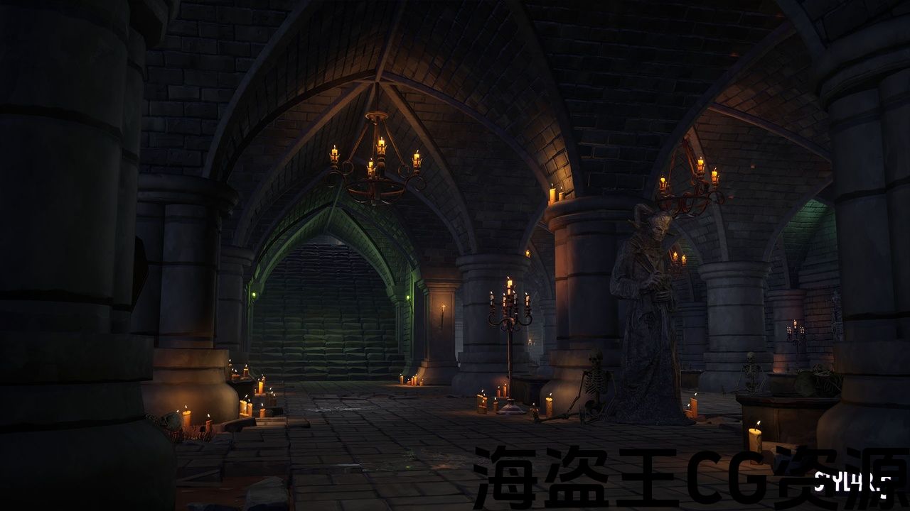幽灵公墓和地穴 104 资产。有许多不同类型的资产可以帮助您创建或完善您的环境。所有采用独特概念和展示示例级别制作的资产也包含在该项目中。