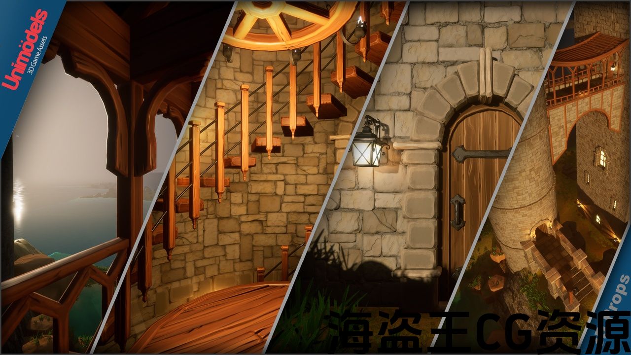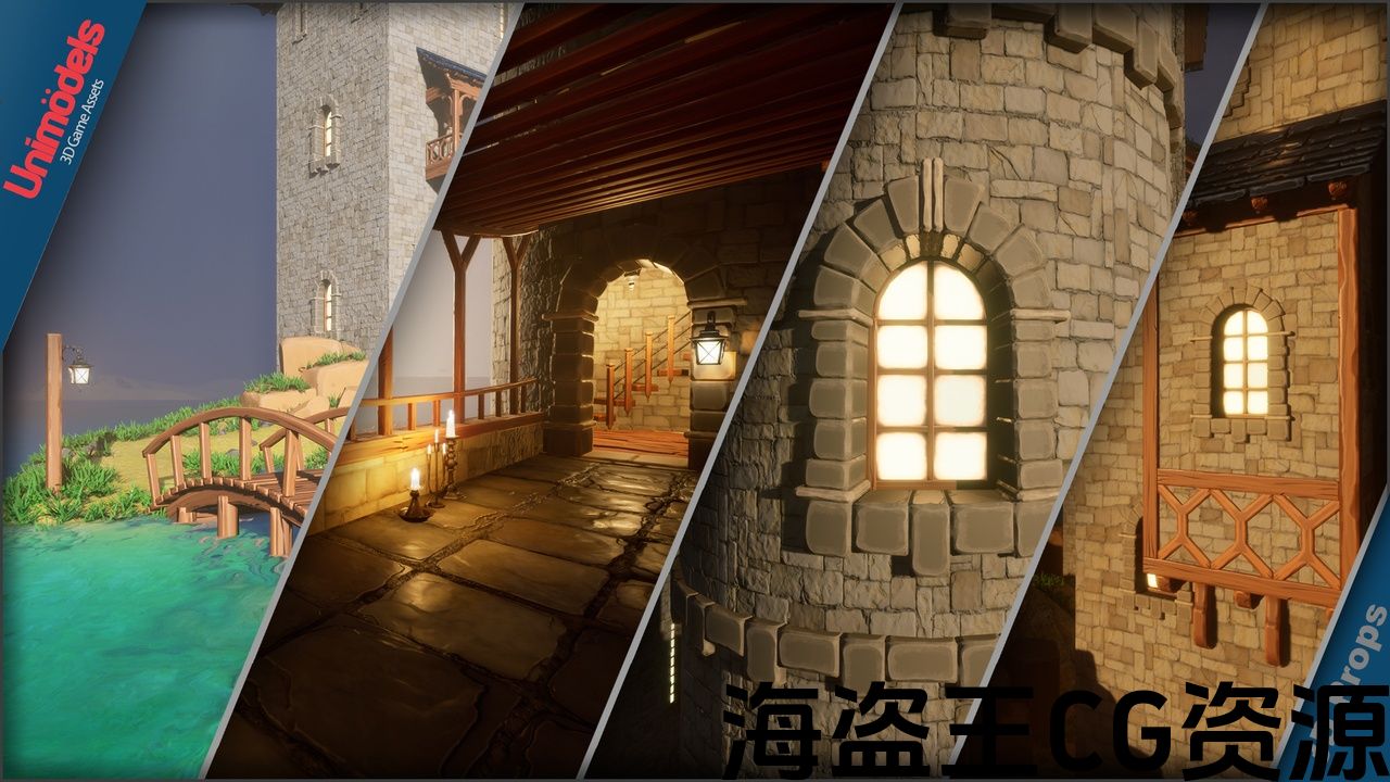 此外,该包还包括室外和室内灯、门、楼梯、桥梁、风格化的石头以及更多您可以在示例图像中找到的元素。