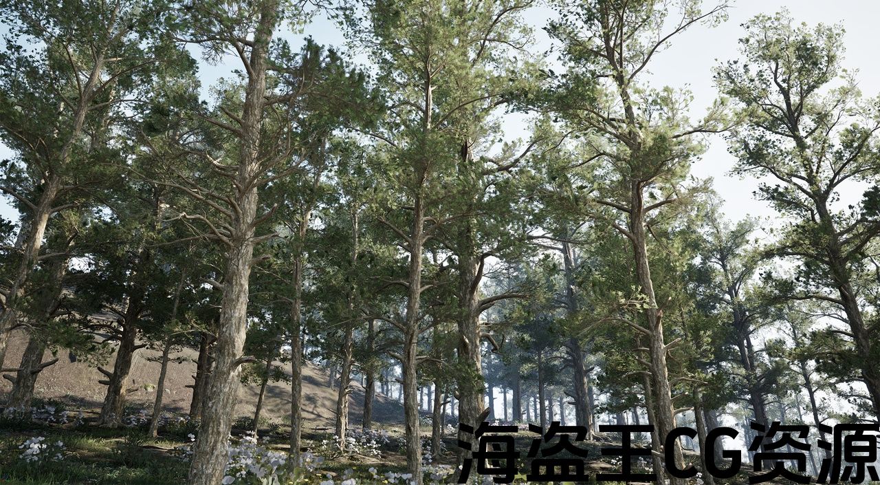 Pine Tree Collection 包含 19 种独特的树木资源:14 棵完全生长的树木和 5 棵树苗。