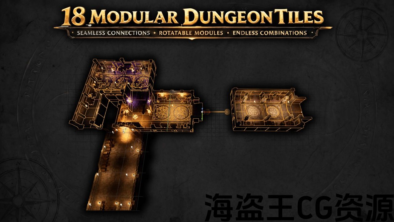 18个即用型图块:一系列预包装的地下城房间,可以立即使用对齐在一起形成一个完整的关卡。