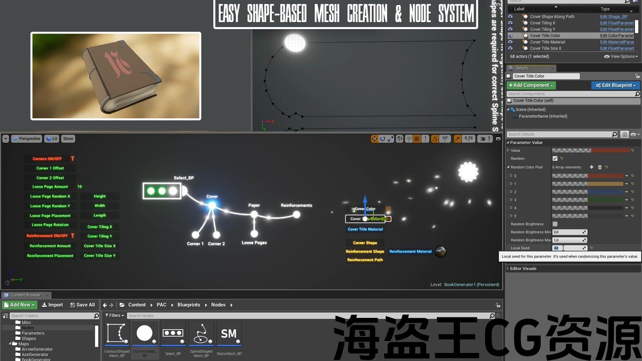 Simple Procedural Asset Creator允许您使用通用的基于节点的系统以程序方式创建简单的资源生成器,并将所有工作流保留在编辑器中。