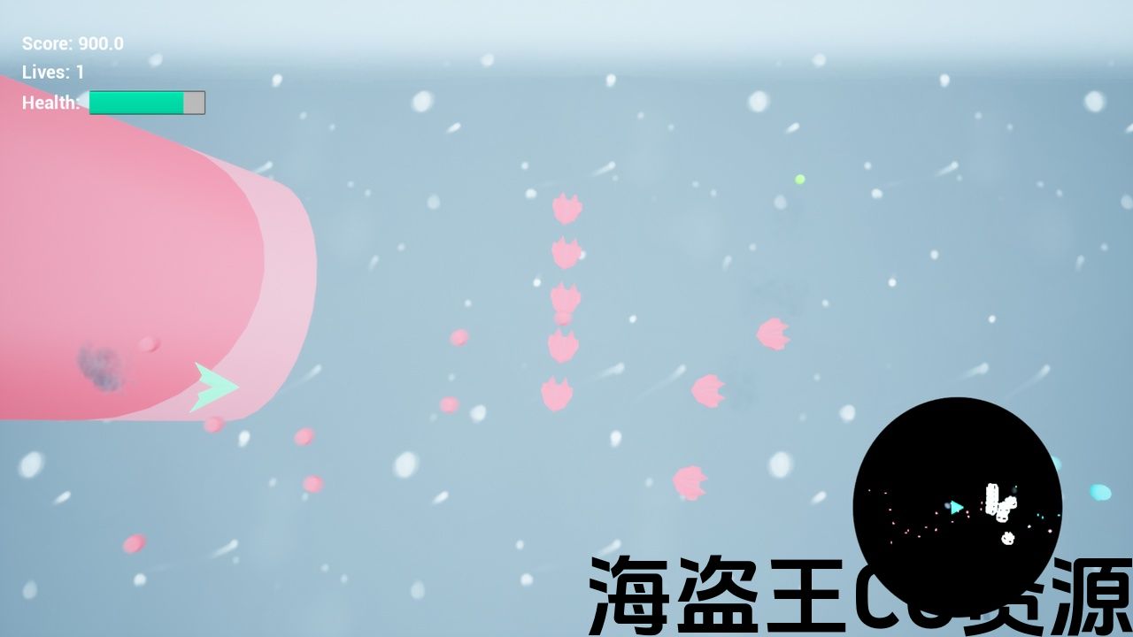 - 显示健康、生命、分数和实时更新的小地图的HUD