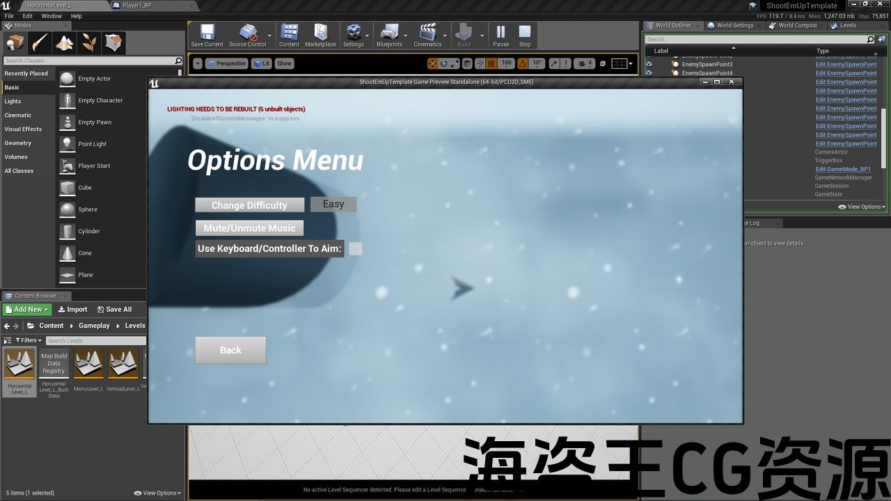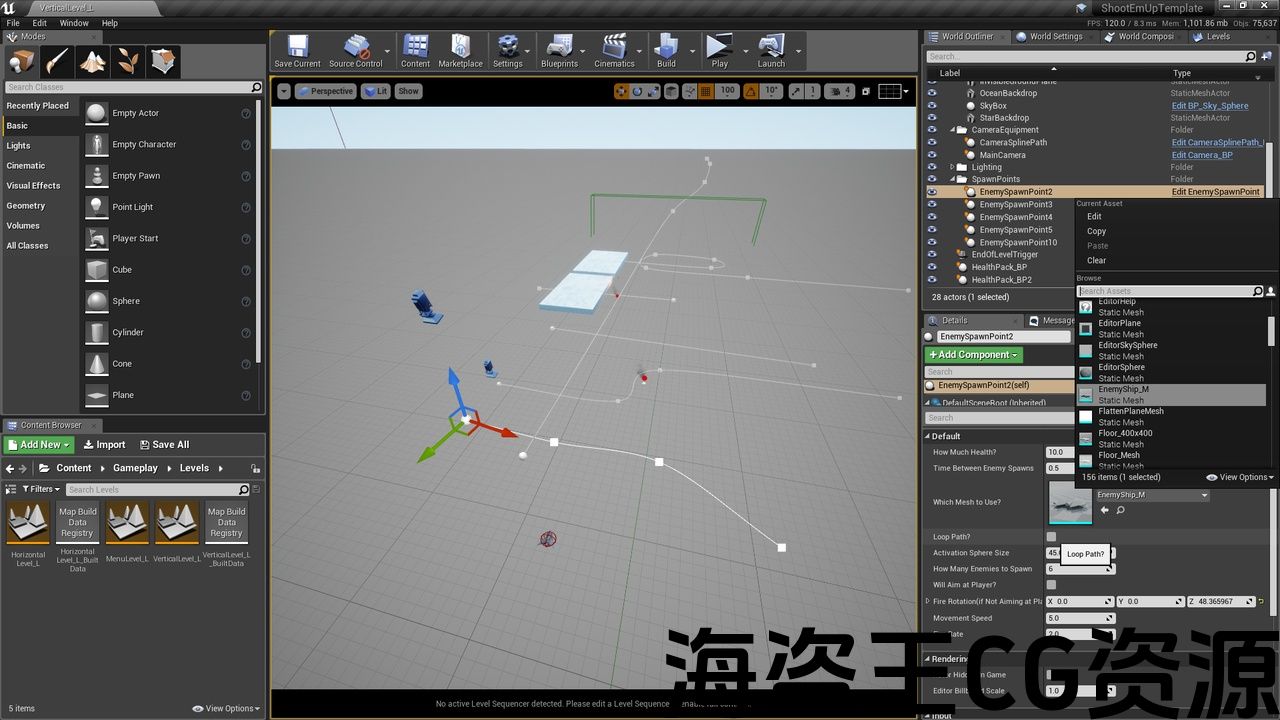 额外注意事项:样条节点可以通过按住”Alt”并单击和拖动来复制。 可以在每个场景内的细节面板中编辑Actor设置(如敌人生命值)。 “选项卡”打开暂停屏幕菜单。