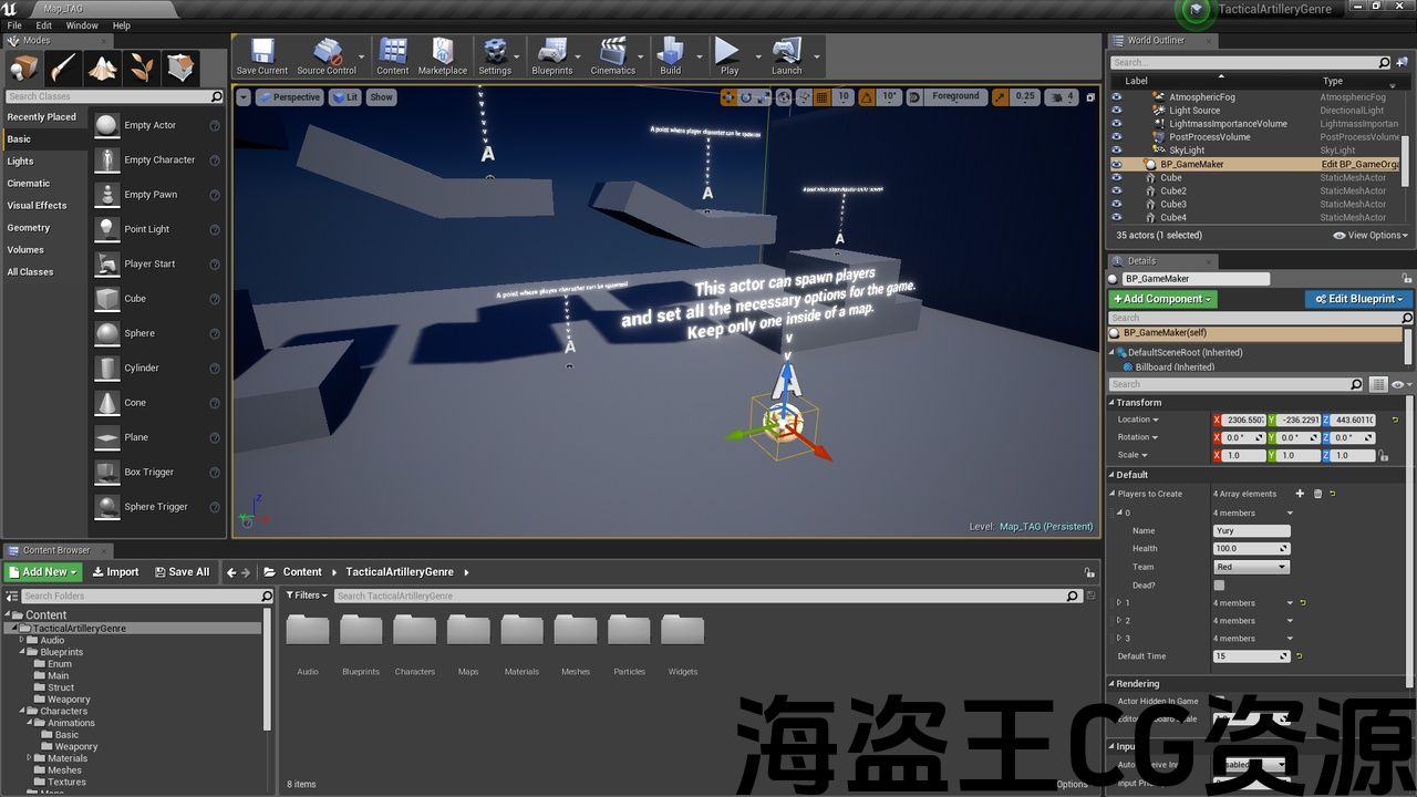 游戏组织者蓝图可以决定每个玩家的回合持续多长时间,也可以决定有多少玩家将存在,他们将在什么团队,什么名字和多少健康点他们将有。